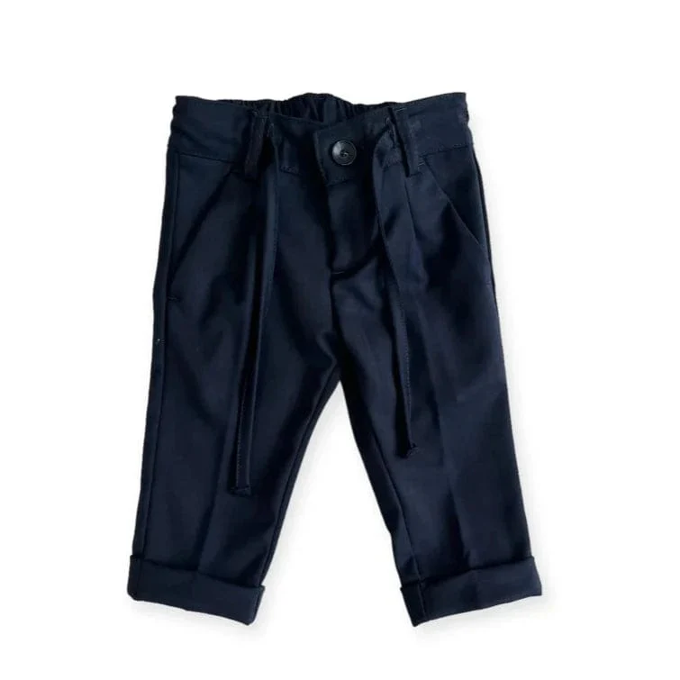 Pantalaccio con pence e risvolti, elastico sul retro.