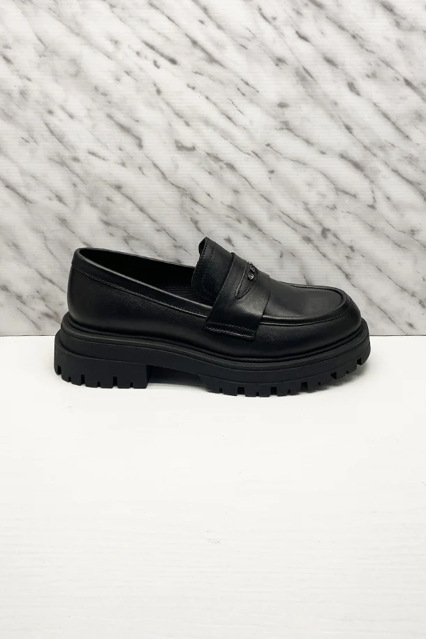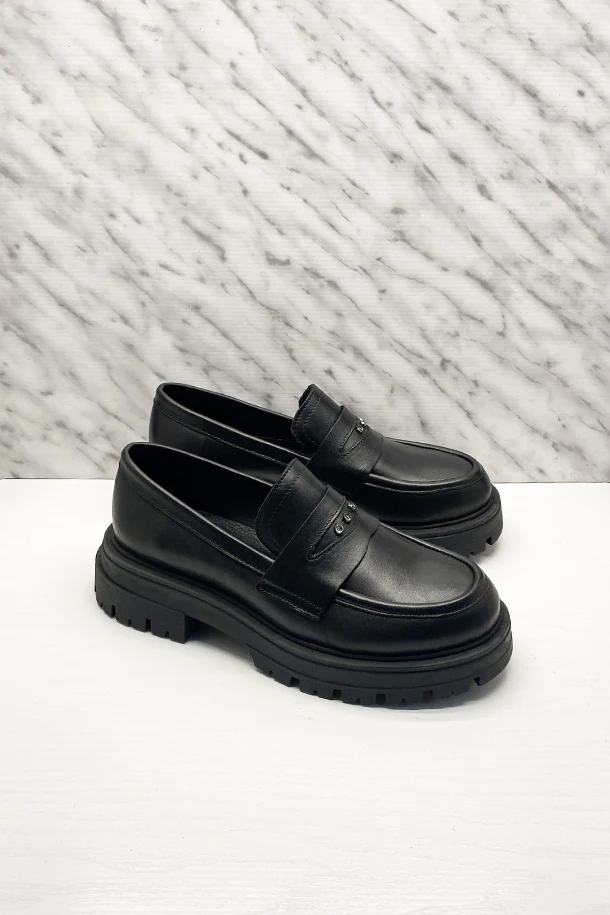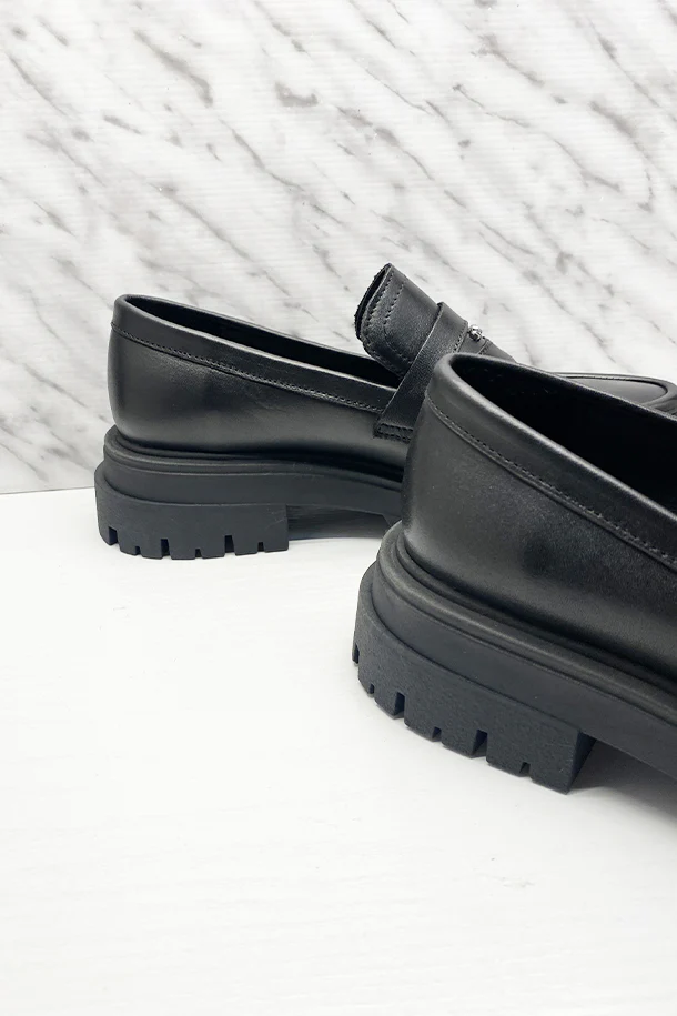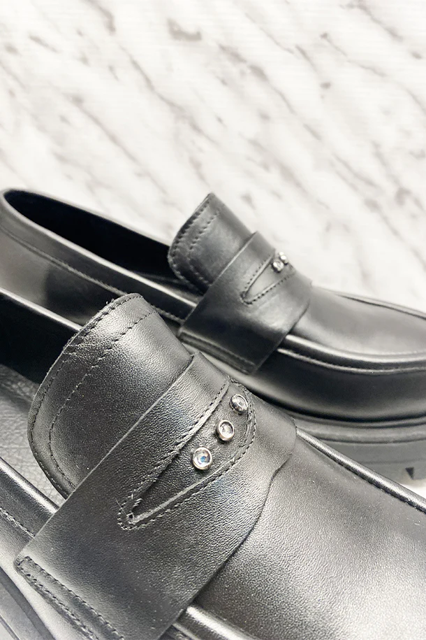 Mocassini slip on in pelle solid color con fascia e brillanti incastonati, suola a carrarmato in gomma con rialzo 20mm