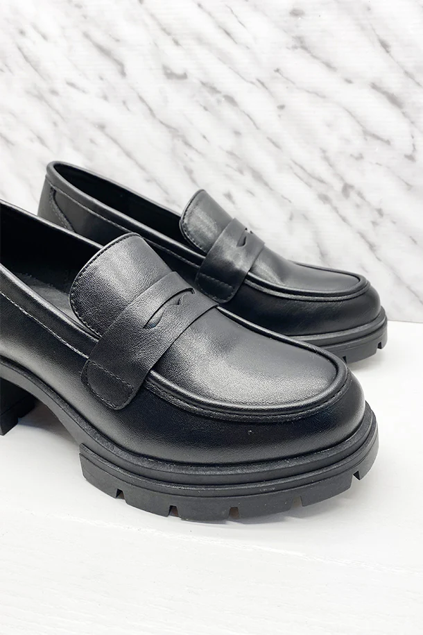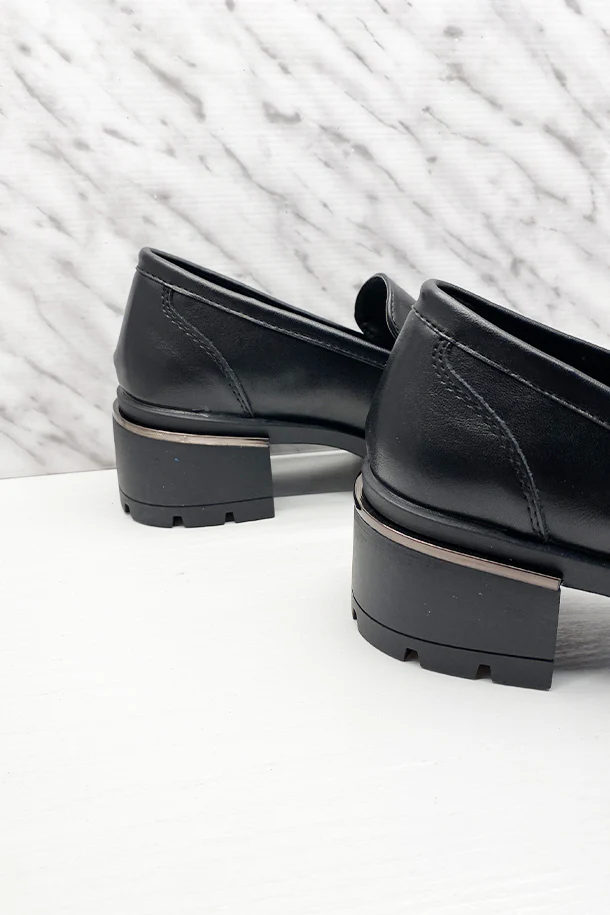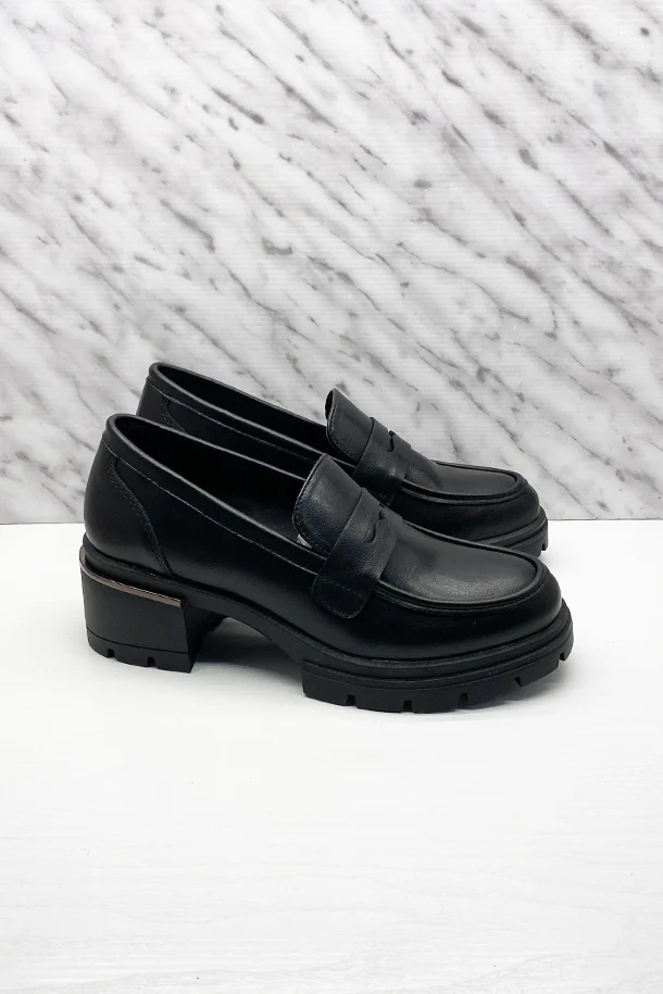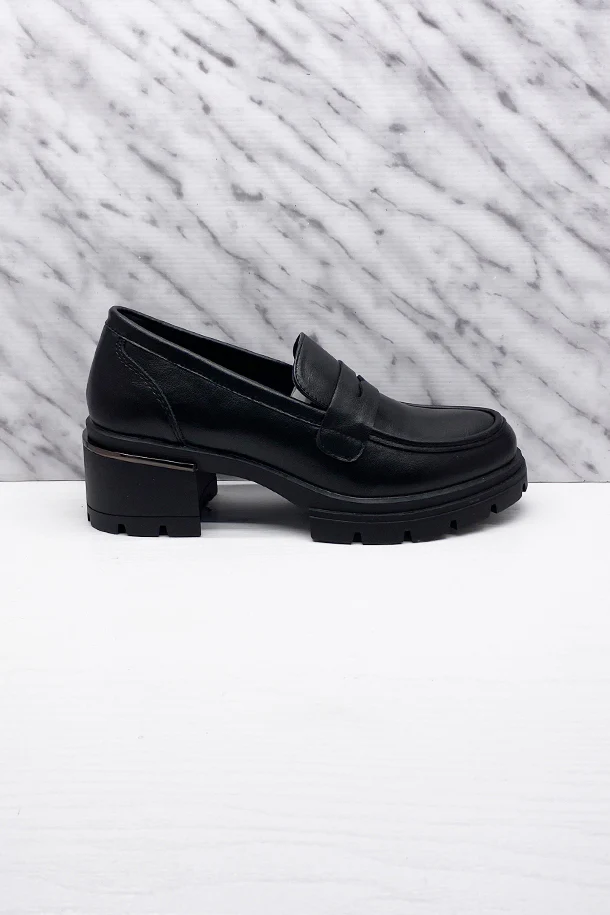 Mocassini slip on in eco pelle solid color con fascia frontale in tinta, tacco 40mm con inserto, fondo e suola in gomma a carrarmato