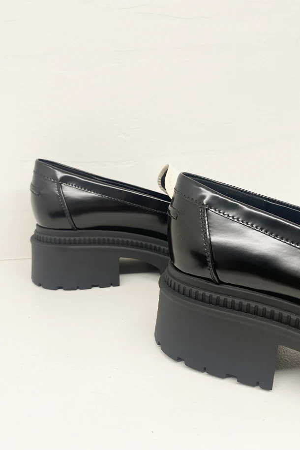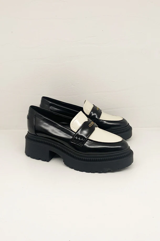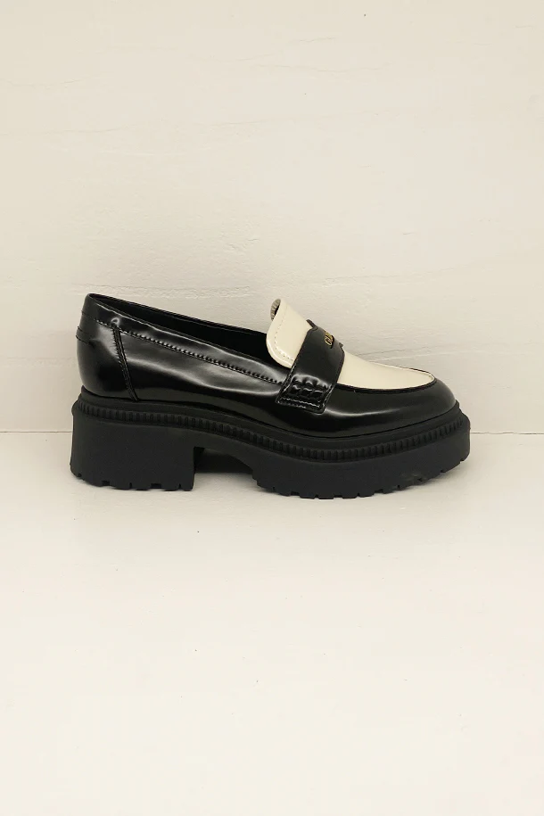 Mocassini slip on in eco pelle solid color con fascia frontale in tinta e logo metallico, suola in gomma acarrarmato con rialzo 30mm