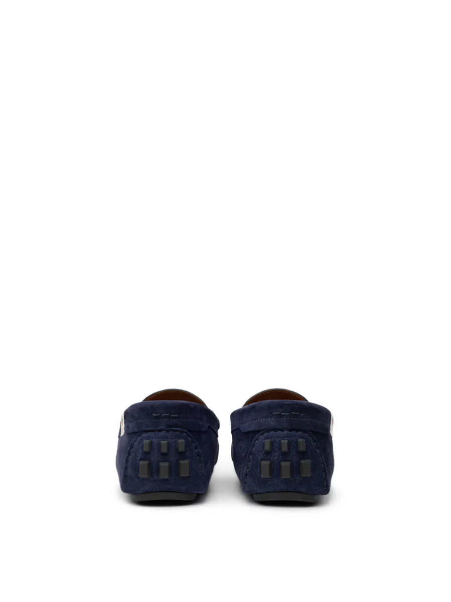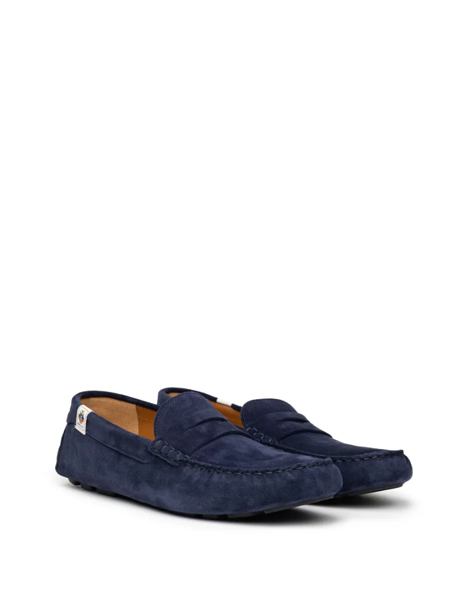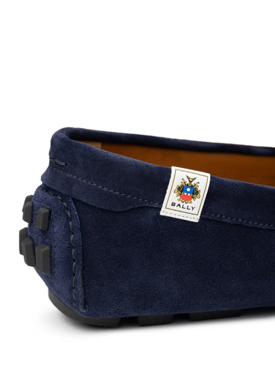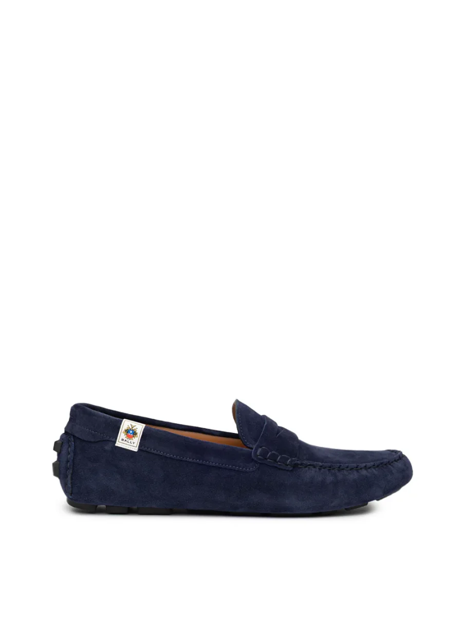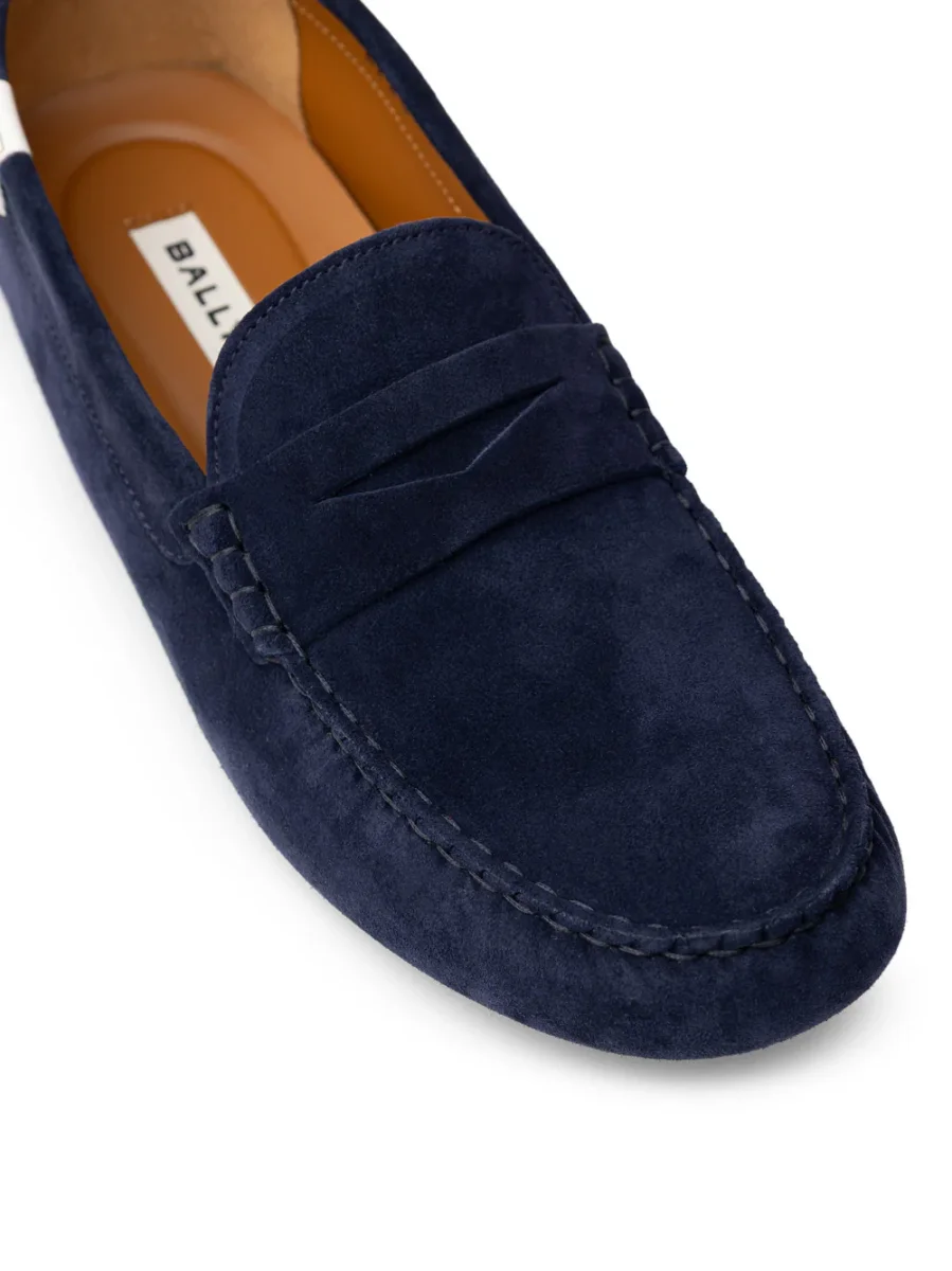 Mocassini Bally in Suede Blu. In pelle scamosciata blu, punta tonda smussata, suola interna con logo, impunture tono su tono. Suola esterna in gomma segmentata.