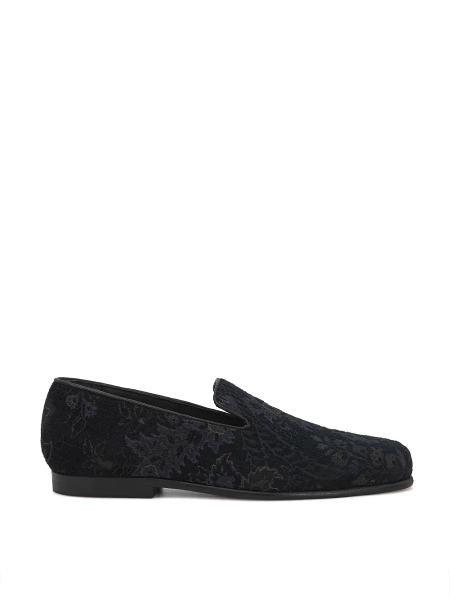 Mocassini con Stampa Fiori Jacquard Etro. Punta leggermente stondata, stampa fiori allover, profilo in pelle tono su tono, soletta interna in pelle con logo. Composizione: 52% Viscosa, 36% Poliestere, 12% Modal. Sku interno: 24SET40