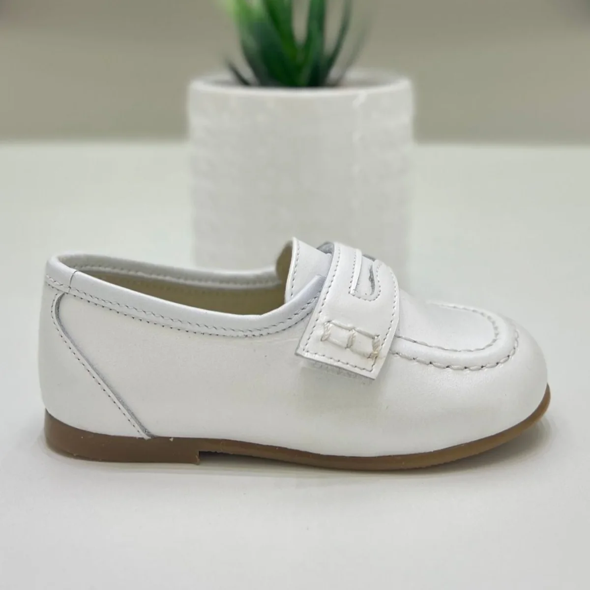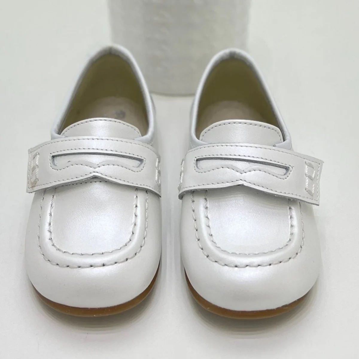 Mocassino bimbo in pelle, con velcro, plantare anatomico e suola antiscivolo.