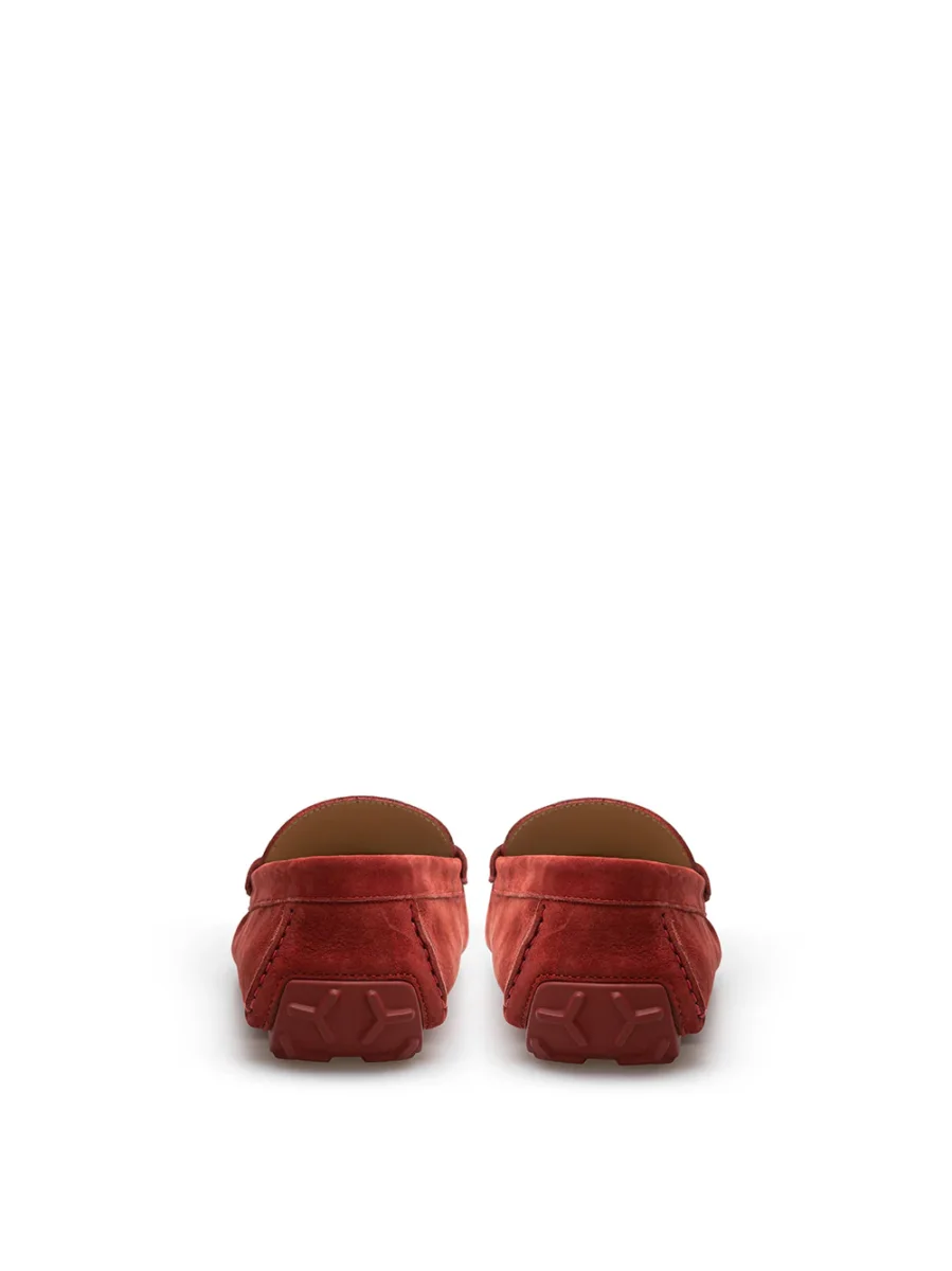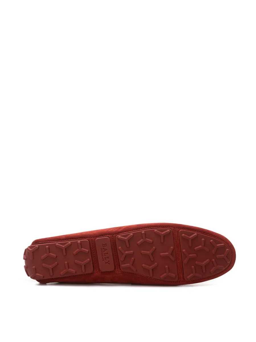 Mocassino Penny in pelle scamosciata Bordeaux Bally. Punta tonda, impunture a vista tono su tono, suola in gomma, inserto in gomma sul retro con logo inciso. Fascia in camoscio sul fronte. Suola esterna a fasce in gomma antiscivolo. Composizione: 100% Pelle-Sku interno:24GEN56