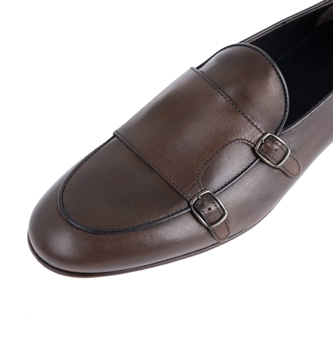 Monk lux elegante mocassino doppia fibbia, realizzato in pregiata pelle di vitello. Questo modello classico unisce raffinatezza e funzionalità, con un design senza tempo arricchito da un doppio bordino che ne esalta la qualità.