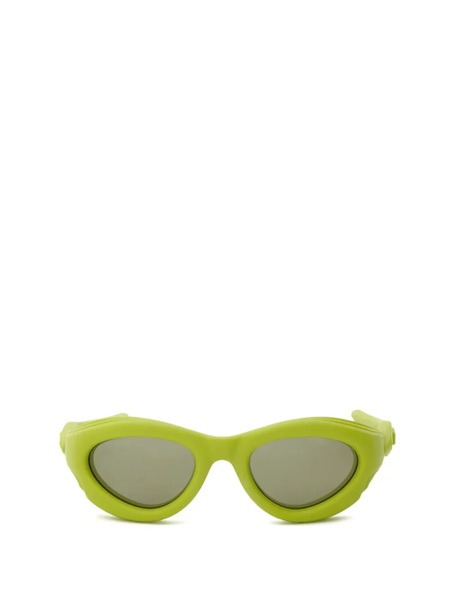 Occhiali da Sole in Acetato Gommato Lime Bottega Veneta. Modello Cat-Eye, lenti scure, montatura spessa con effetto satinato