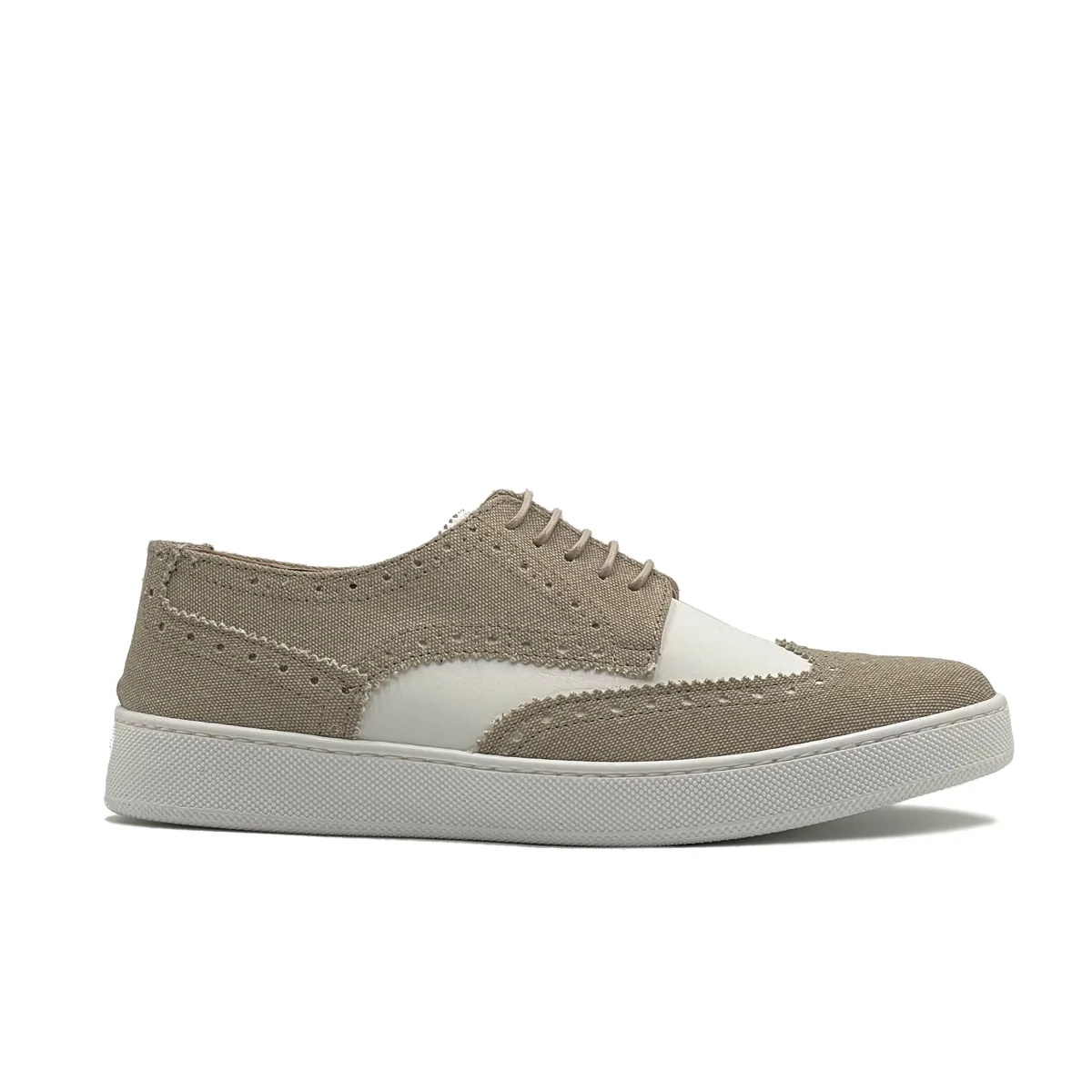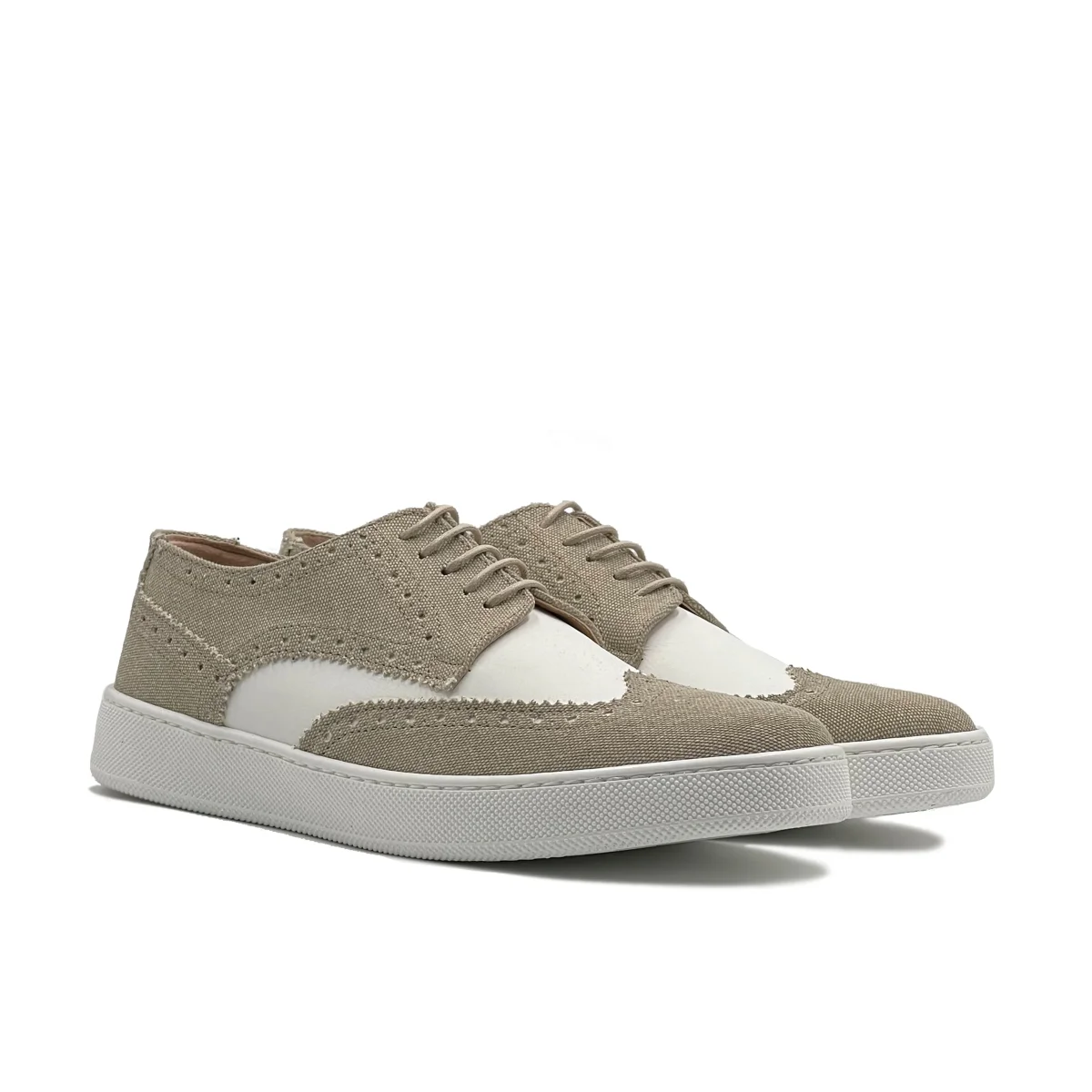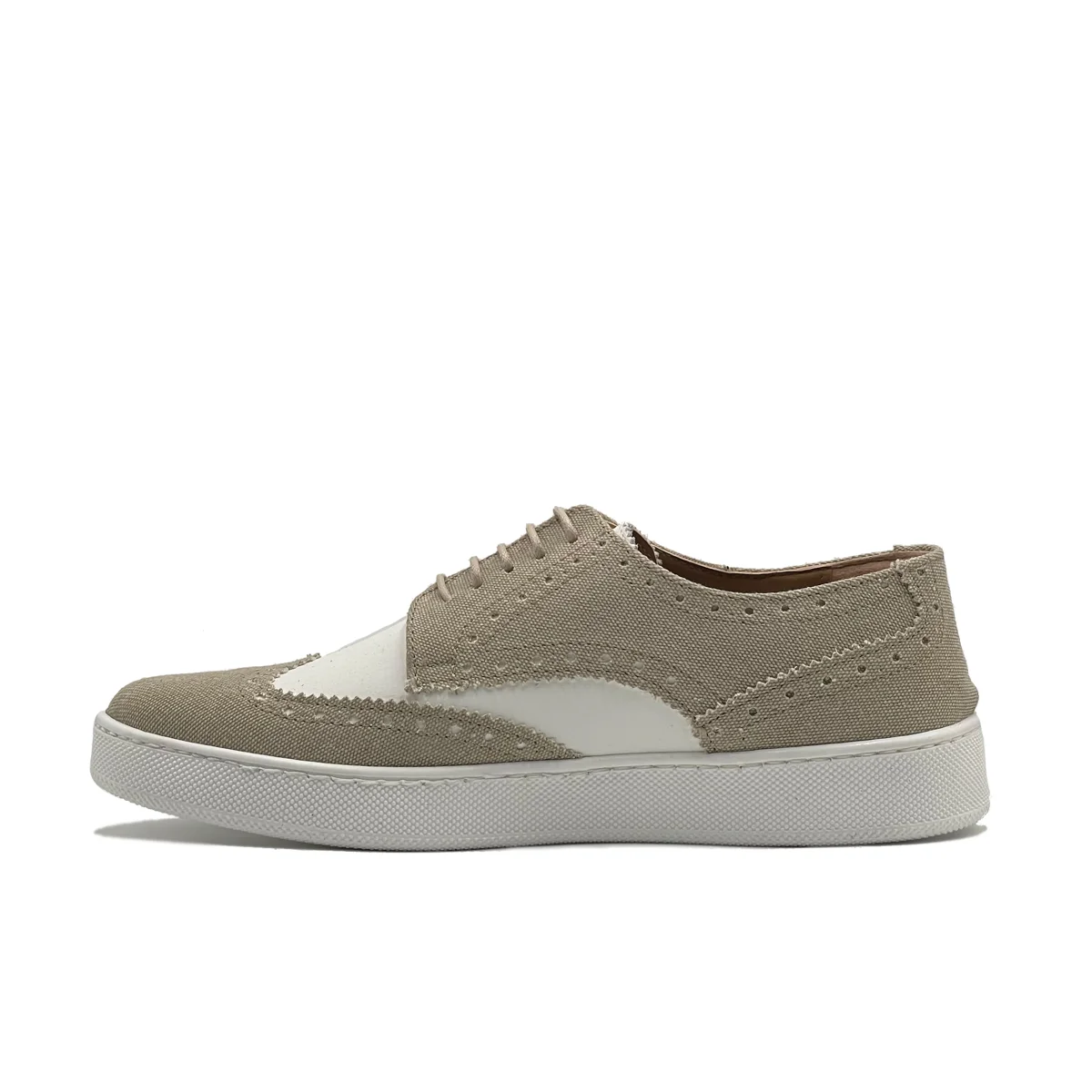 Il mocassino Oxford canvas è una calzatura dal design elegante e informale. La tomaia è realizzata in canvas, un tessuto resistente e leggero,