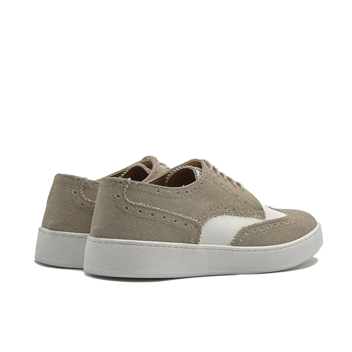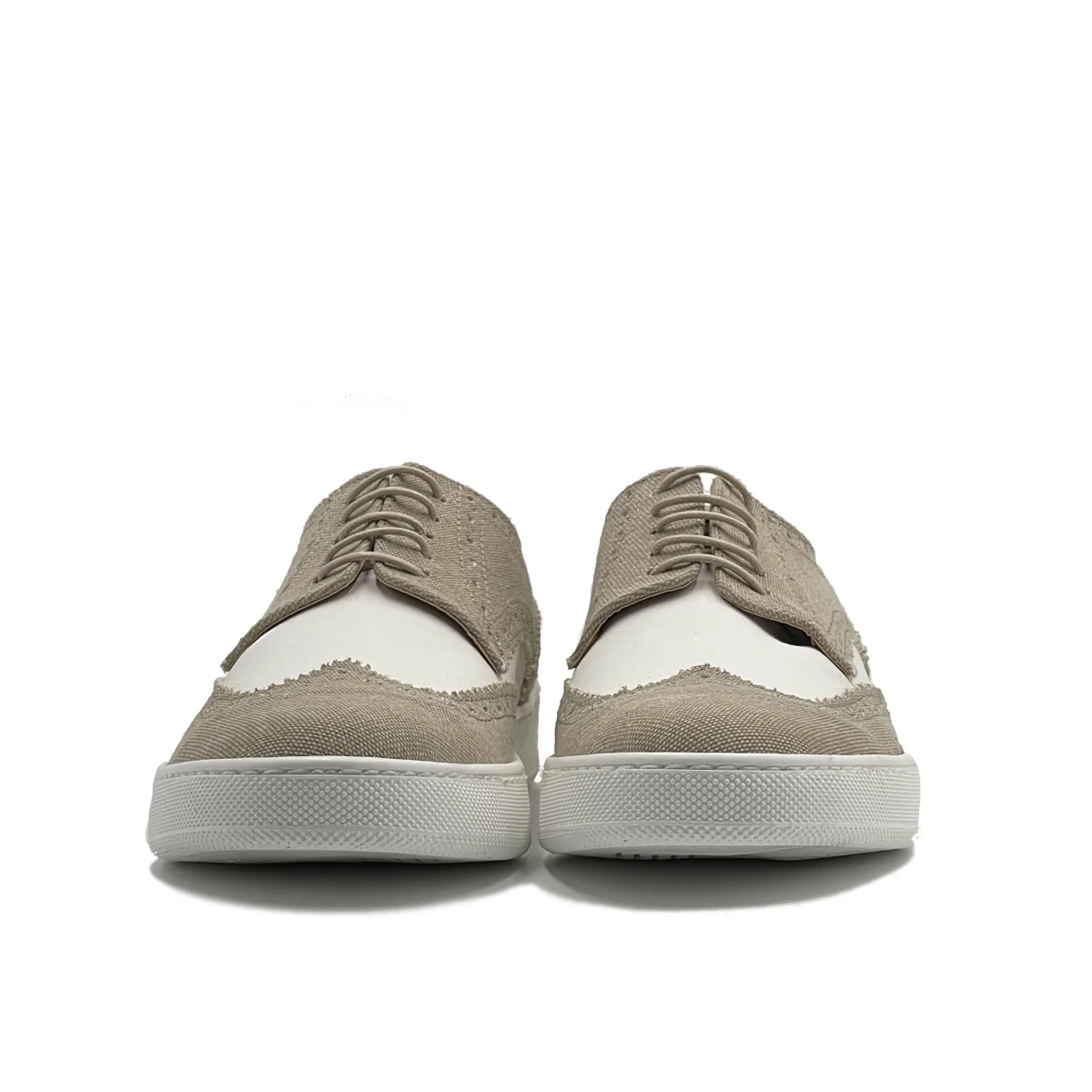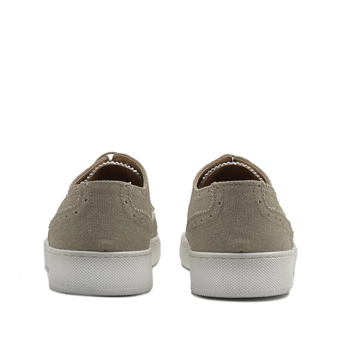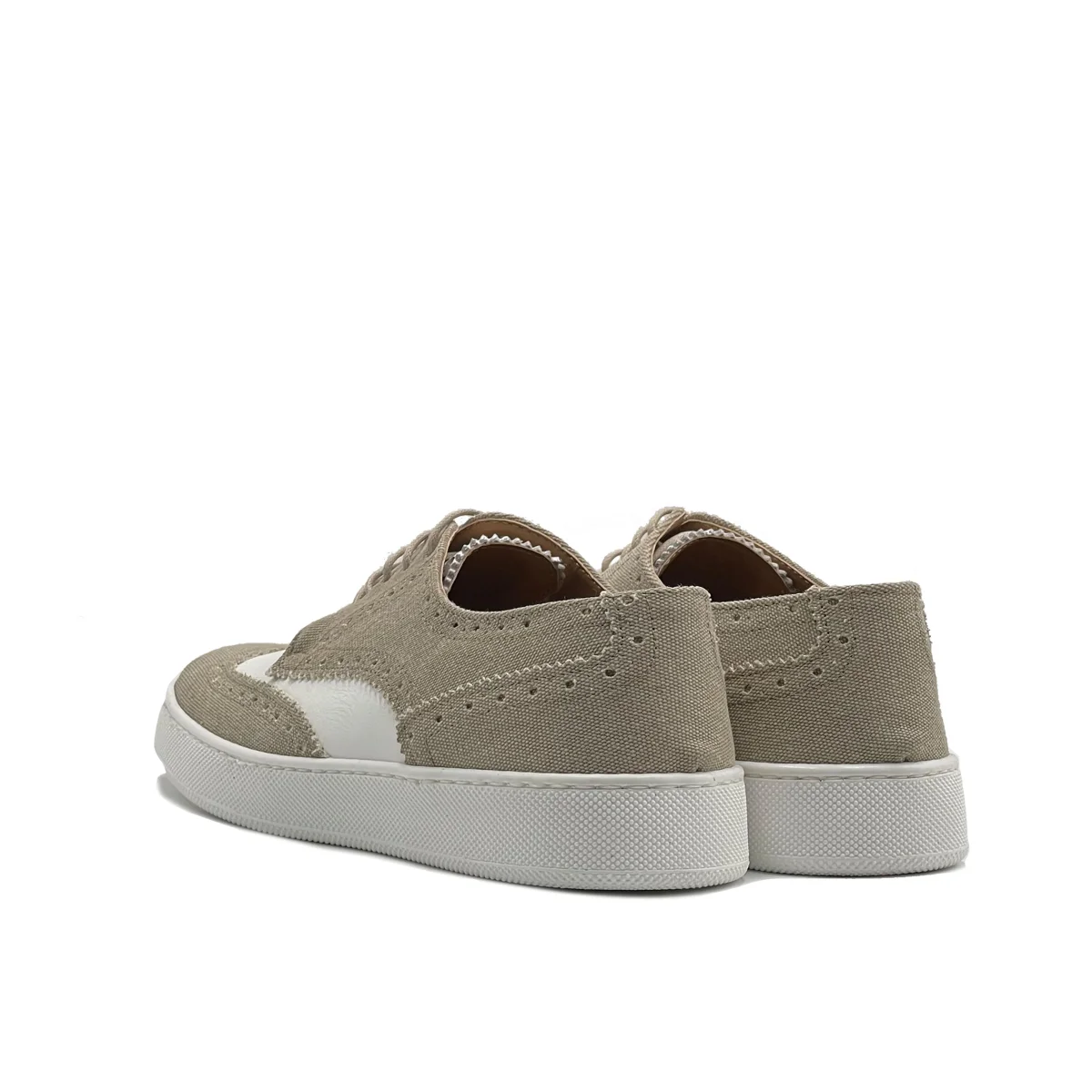 Il mocassino Oxford canvas è una calzatura dal design elegante e informale. La tomaia è realizzata in canvas, un tessuto resistente e leggero,