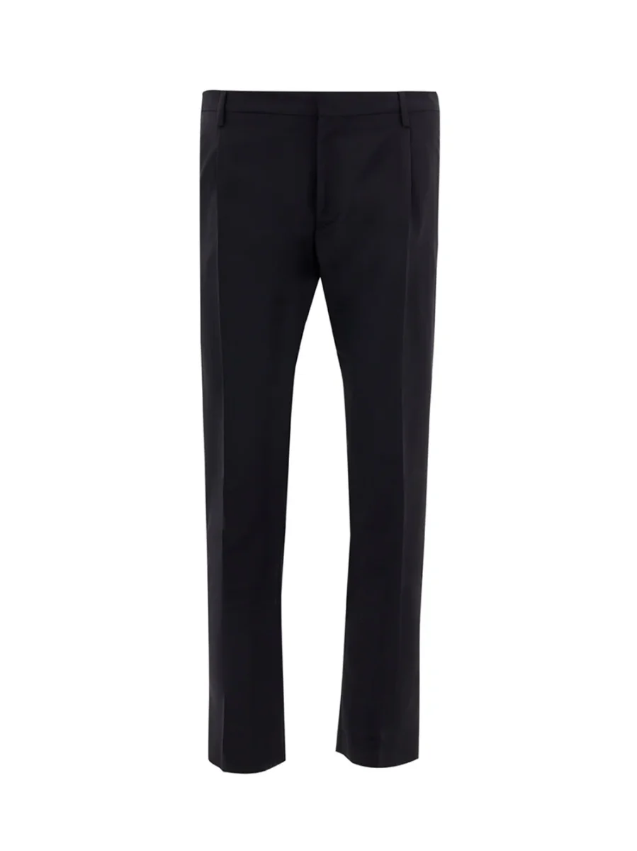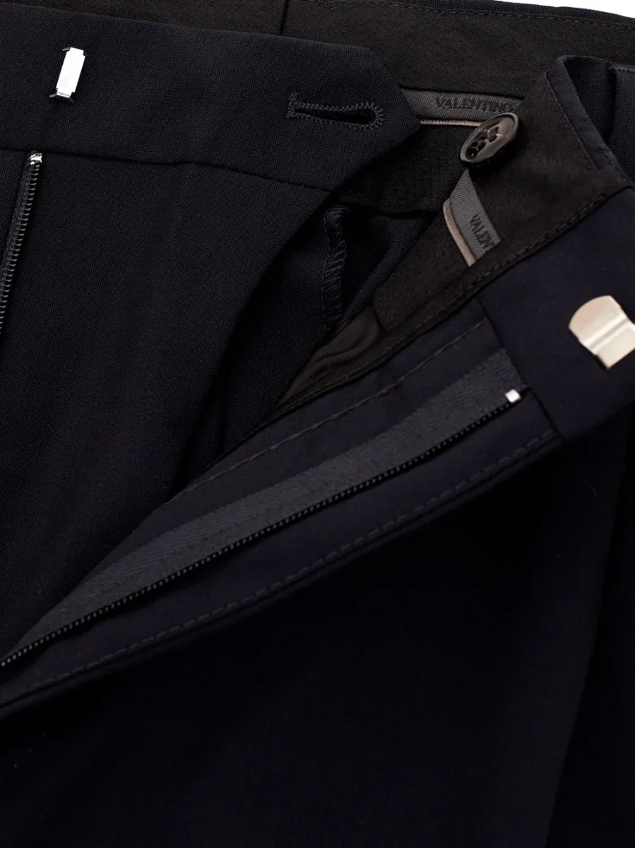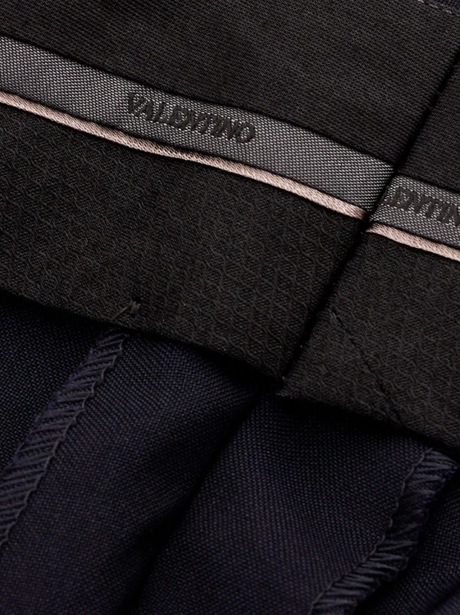 Pantalone Elegante Sartoriale Valentino in lana e mohair, effetto leggermente lucido, taglio classico, quattro tasche, chiusura frontale gancino e zip coperti, due tasche laterali e due posteriori a filetto. Fondo 17 cm. Vestibilità regular. Composizione: 80% Lana, 20% Mohair-Sku interno:23SET29