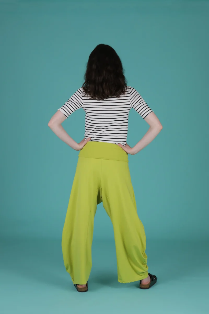 Pantalone in jersey di cotone con cavallo basso e fianchi arrotondati.
