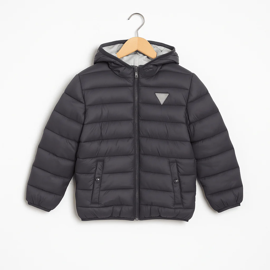 Piumino 100 grammi in colore grigio, caratterizzato da un’imbottitura leggera e cuciture orizzontali che mantengono una linea pulita. Dotato di cappuccio, zip frontale e tasche laterali con bottone a pressione. Un modello pratico e minimal, ideale per l’uso quotidiano.