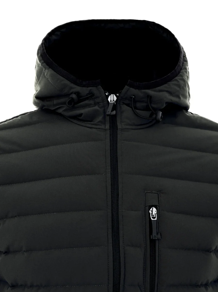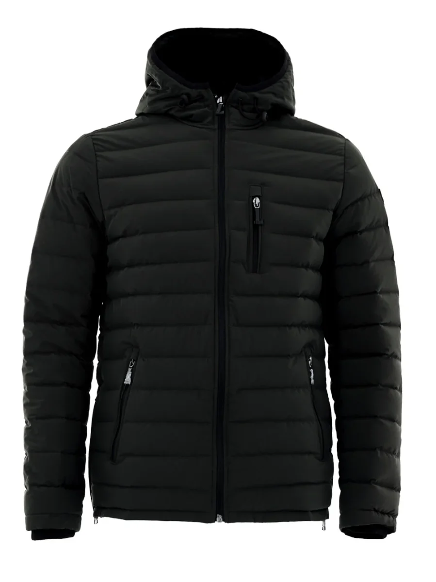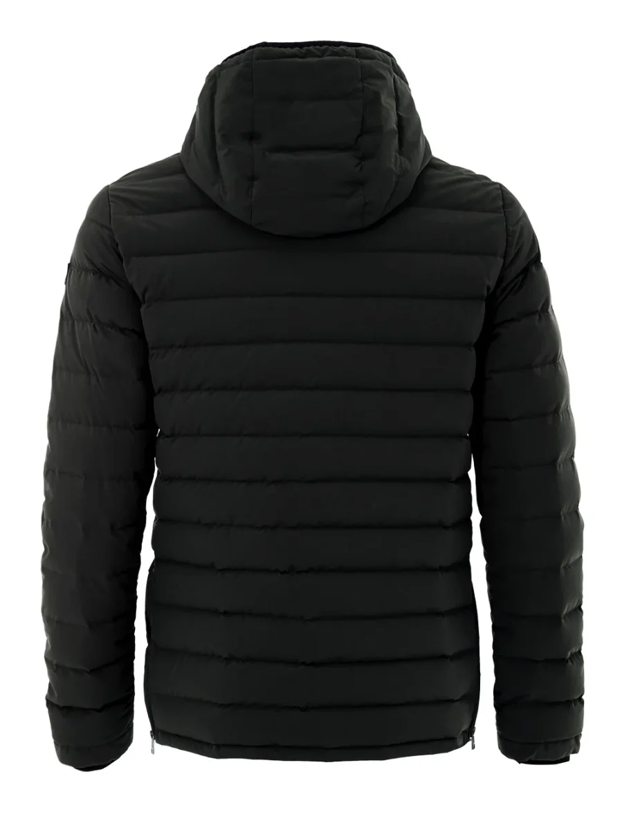 Piumino Lightweight Imbottito in Nero Moose Knuckles. In tessuto tecnico, imbottitura interna, allacciatura frontale con zip, due tasche laterali chiuse con zip. Cappuccio regolabile, logo applicato sulla manica.