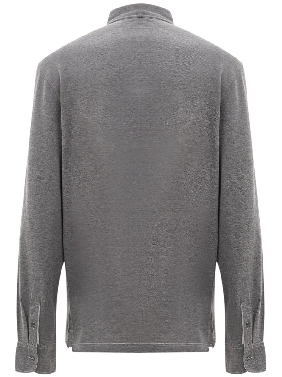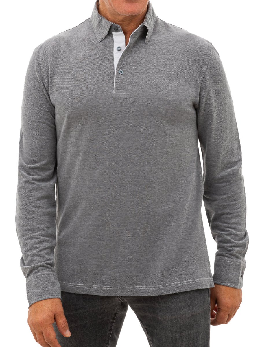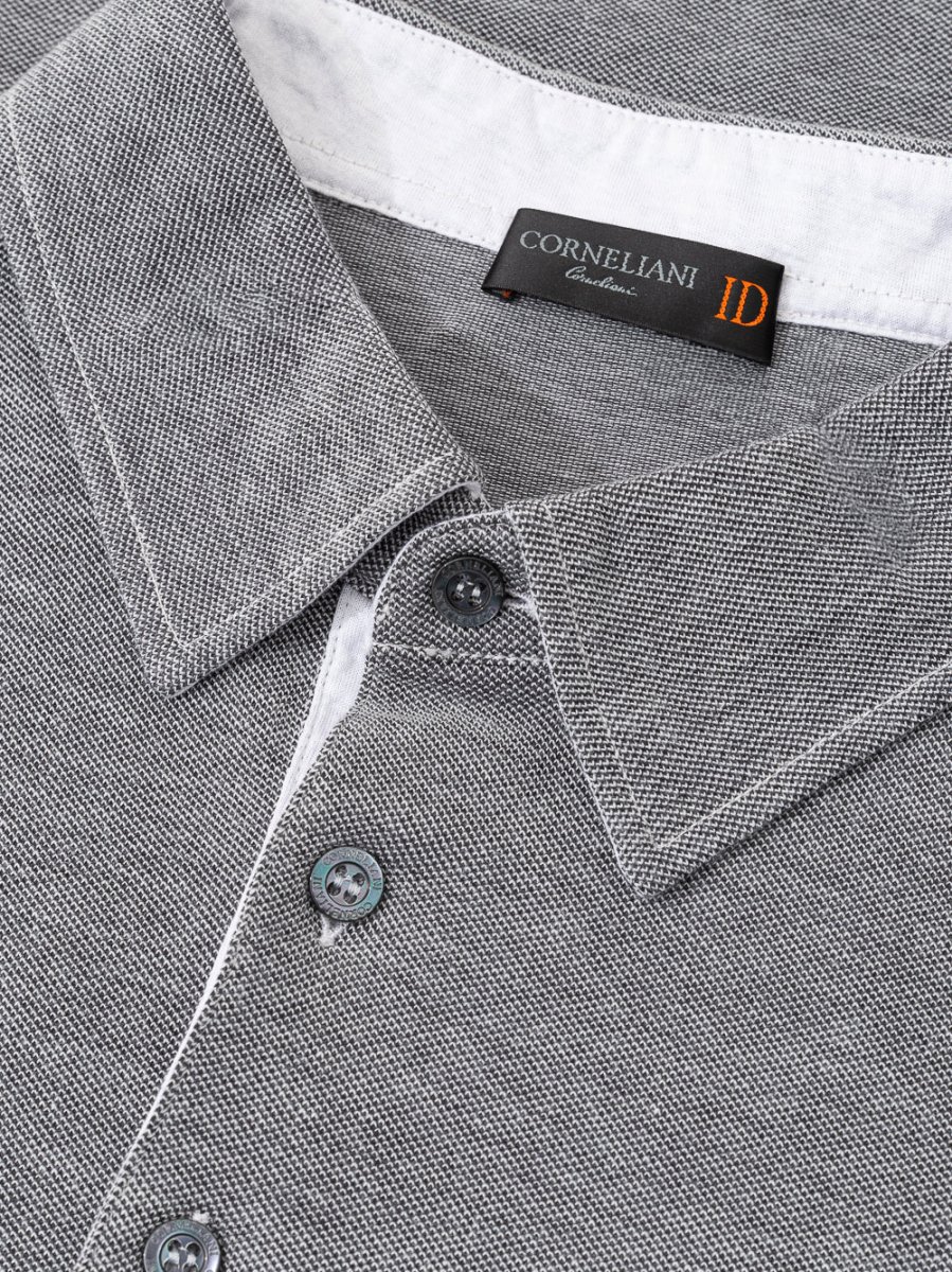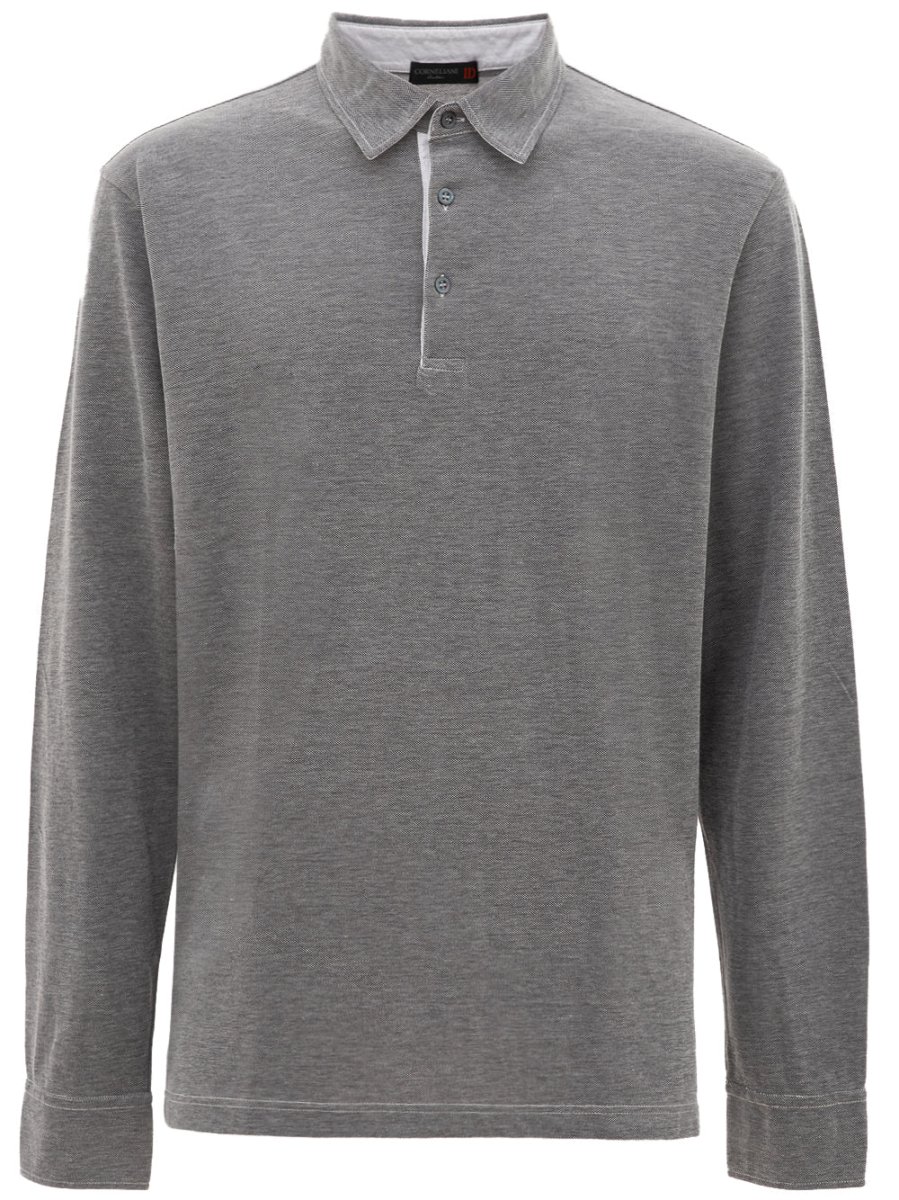 Polo Corneliani Grigia a Maniche lunghe di colore grigio,in cotone,colletto classico Polo a 4 bottoni bicolor con bianco.