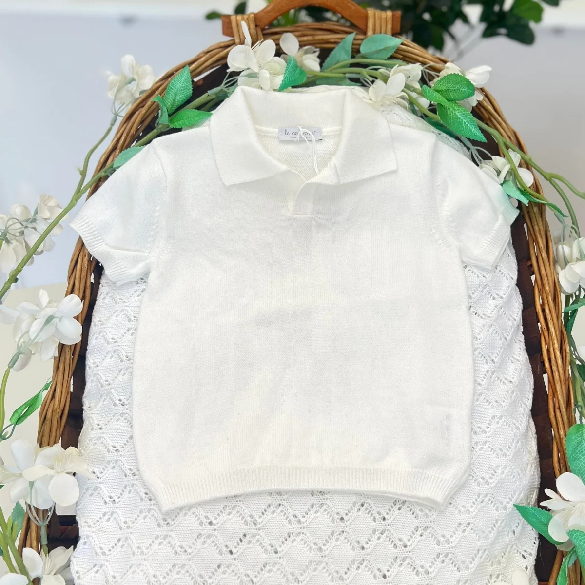 Polo a manica corta in filo di cotone bianca per bimbo, fresca e comoda, ideale per un look pratico e curato nelle giornate più calde.