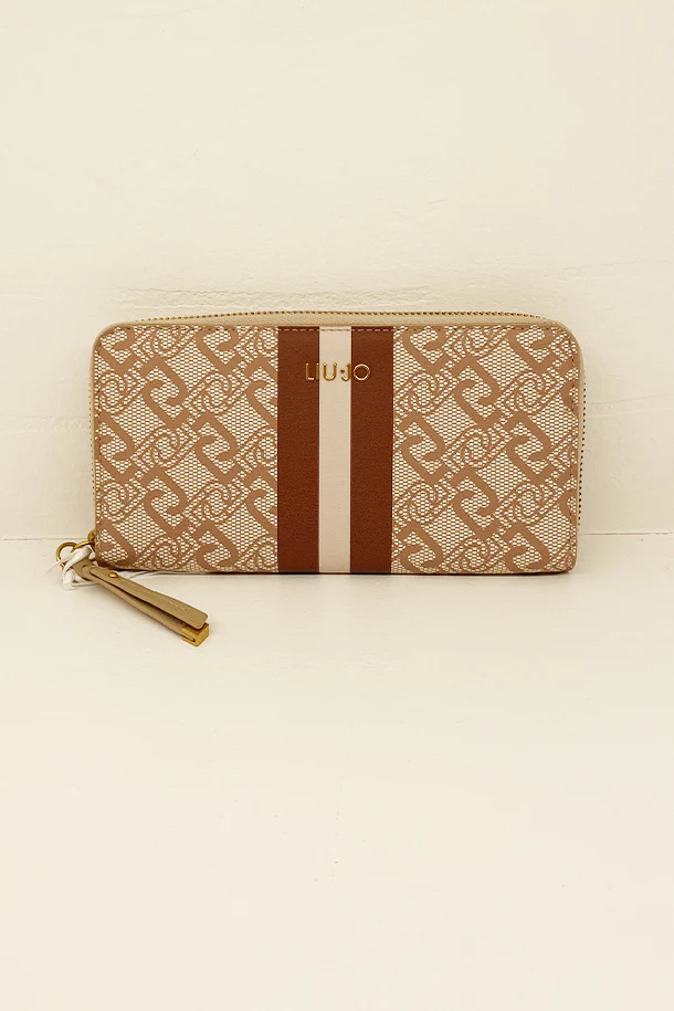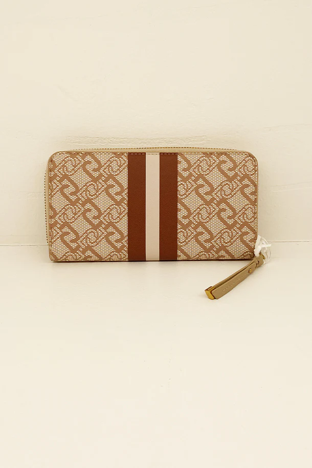 Portafogli in ecopelle con logo metallico e chiusura a zip, multi scomparti interni