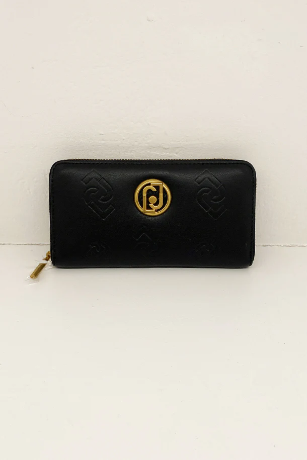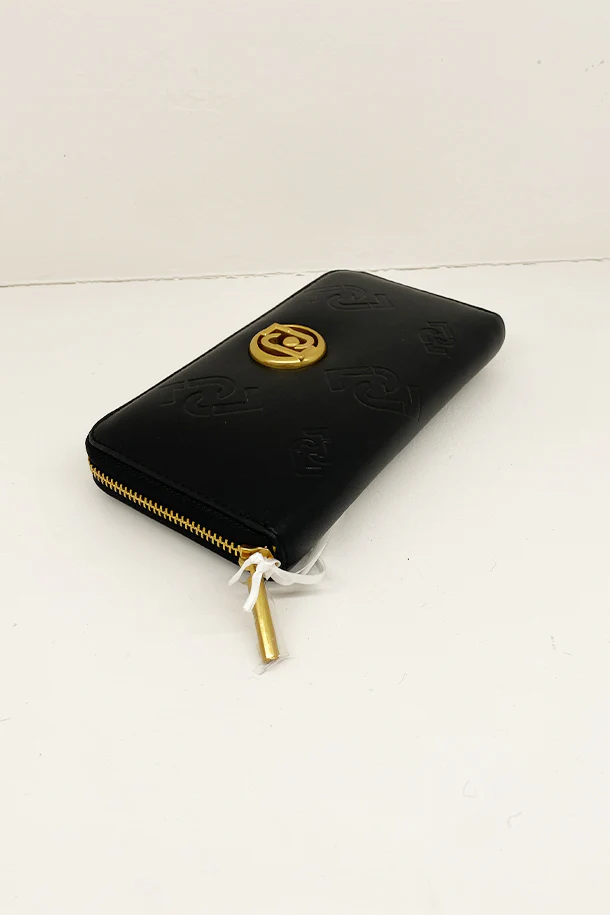Portafogli a tasca con chiusura a zip, inserto logato metallico, interno foderato con multi scomparti