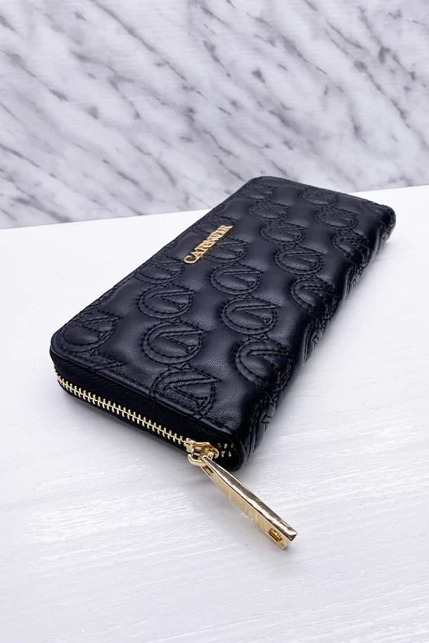 Portafogli a tasca in ecopelle impunturata con chiusura a zip