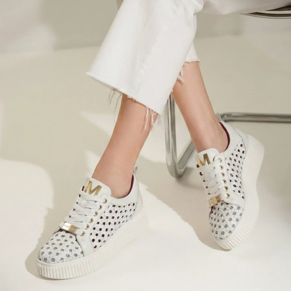 SALLY 27 è la sneaker donna in pelle intrecciata pensata per chi desidera freschezza, eleganza e comfort in un’unica scarpa.La lavorazione intrecciata dona movimento e leggerezza visiva, rendendola ideale per outfit primaverili ed estivi. Il fondo alto 5 cm slancia la silhouette mantenendo stabilità e naturalezza nel passo.Una sneaker sofisticata ma facile da indossare ogni giorno.
