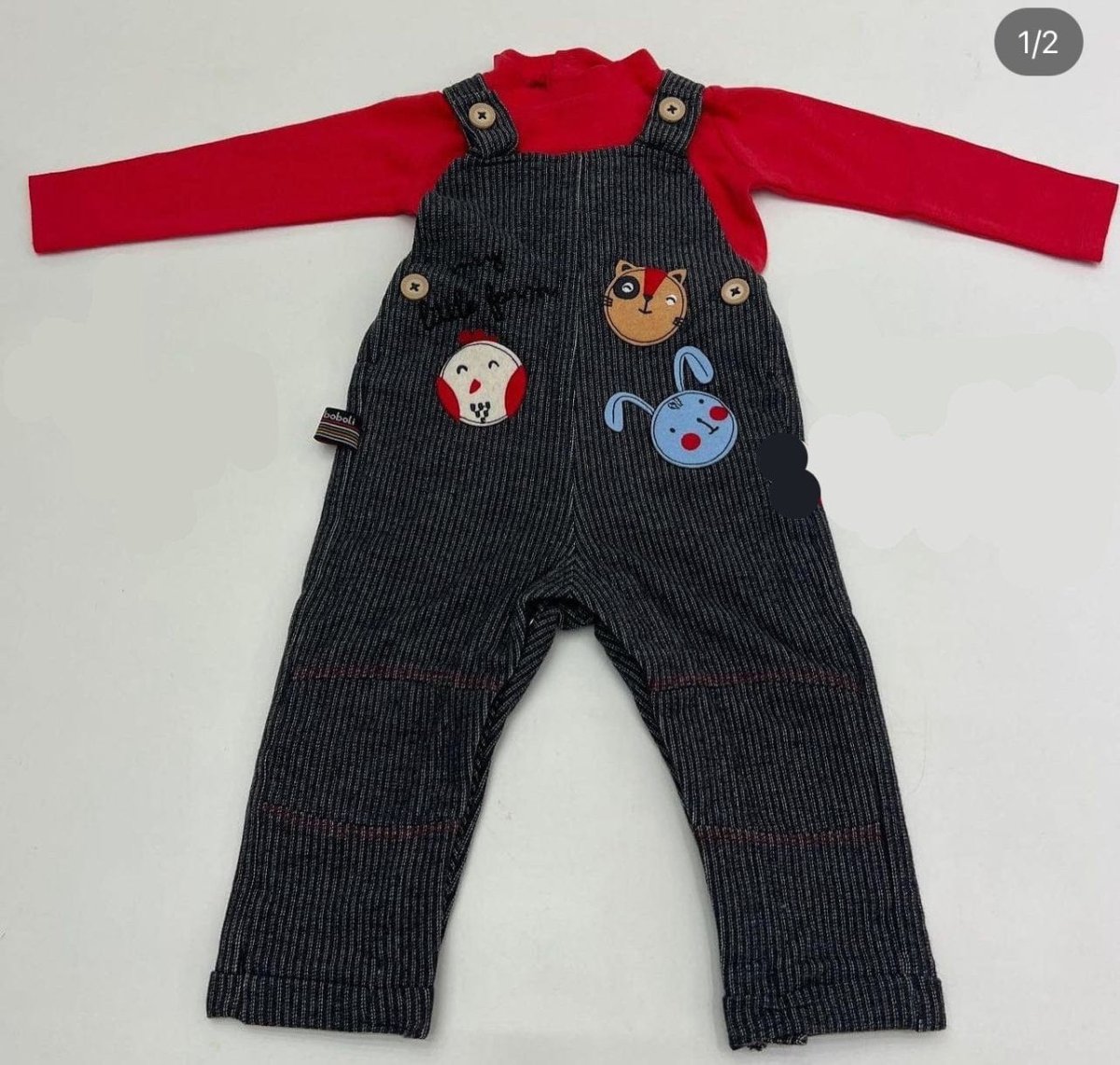 Salopette con maglia mezzo collo e stampe animali.