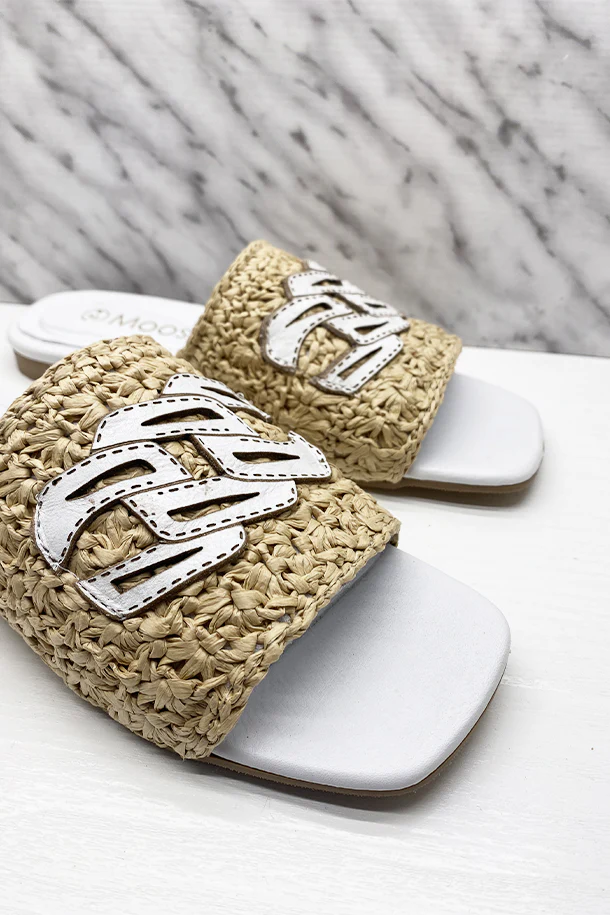Sandali bassi slip on in corda intrecciata con decorazione, suola interna in pelle, fondo flat in gomma