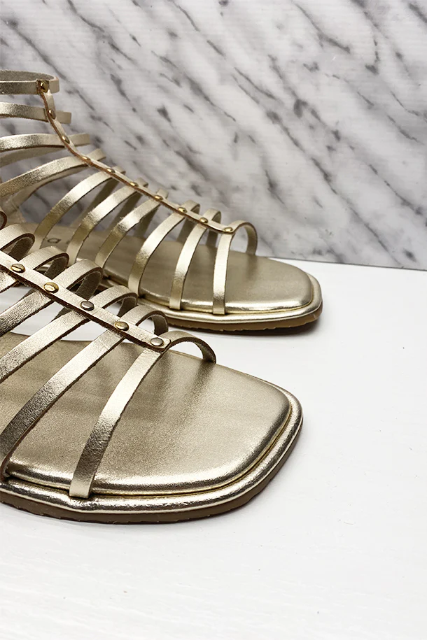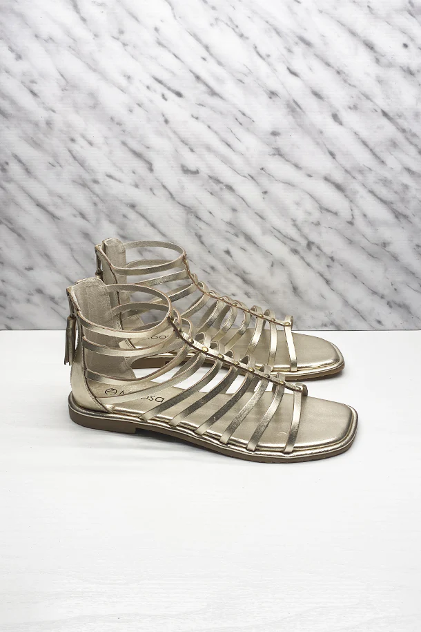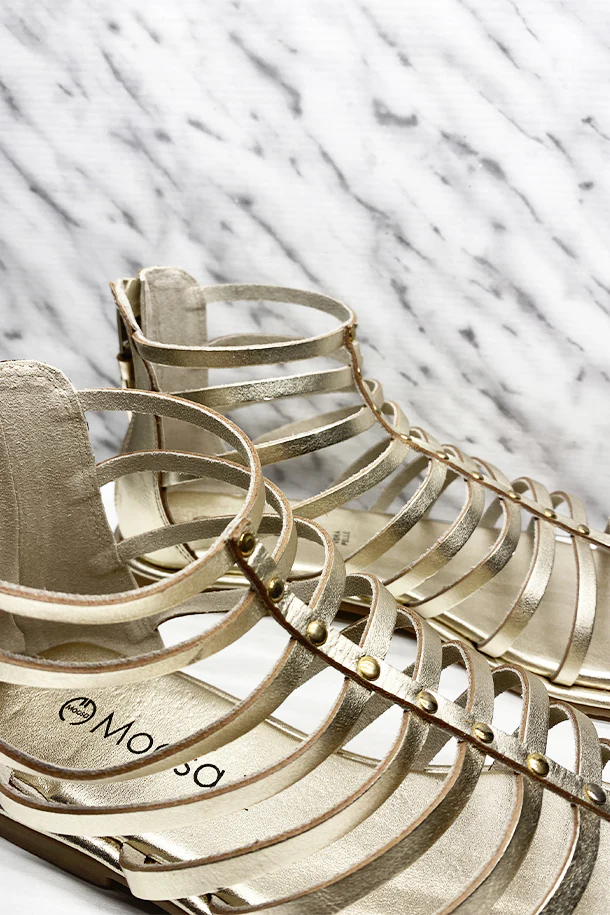 Sandali bassi in pelle solid color con disegno a gabbia, borchie metalliche decorativa, zip posteriore con nappina in tinta, suola logata in pelle, fondo flat in gomma