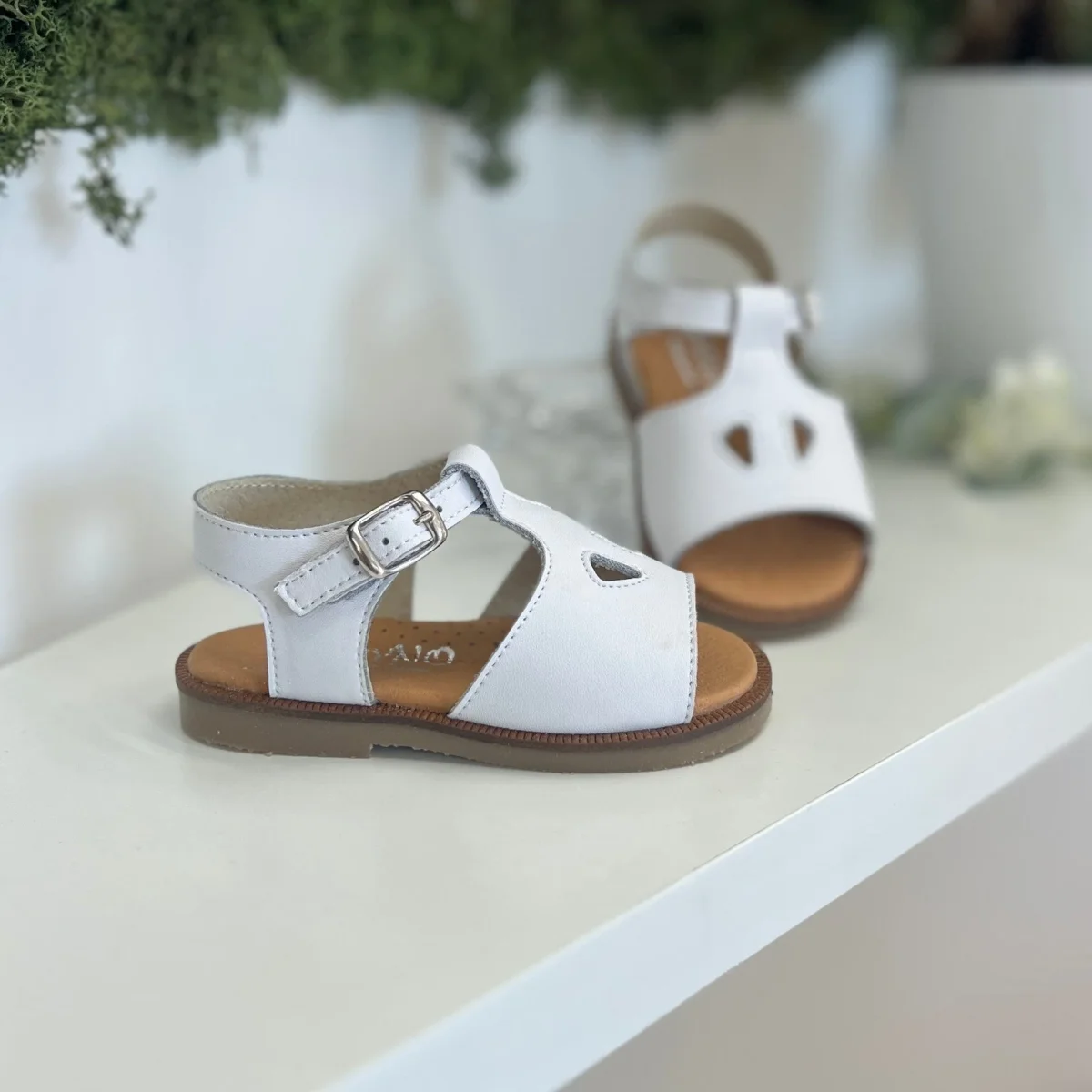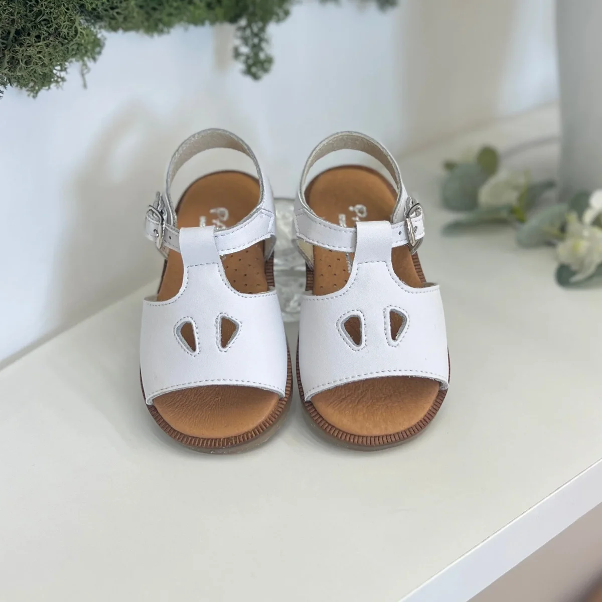 Sandali in pelle con occhiello e fibbia, plantare anatomico e suola antiscivolo.