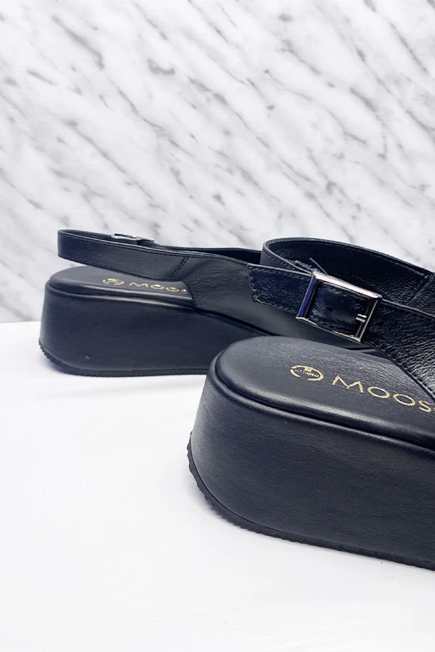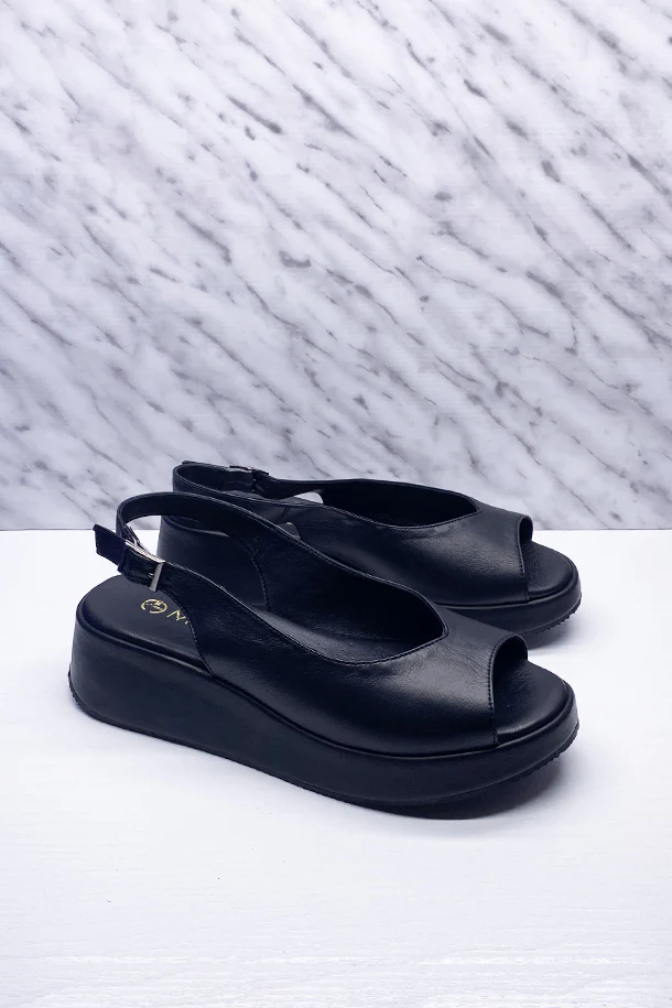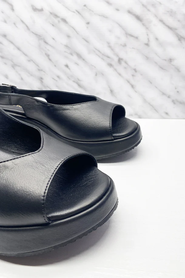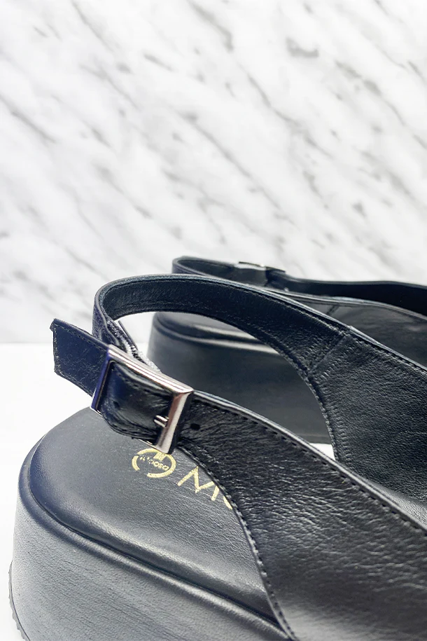 Sandali slanciati in pelle solid color con fibbia di regolazione alla caviglia, suola in pelle logata, zeppa 40mm in tinta con fondo in gomma