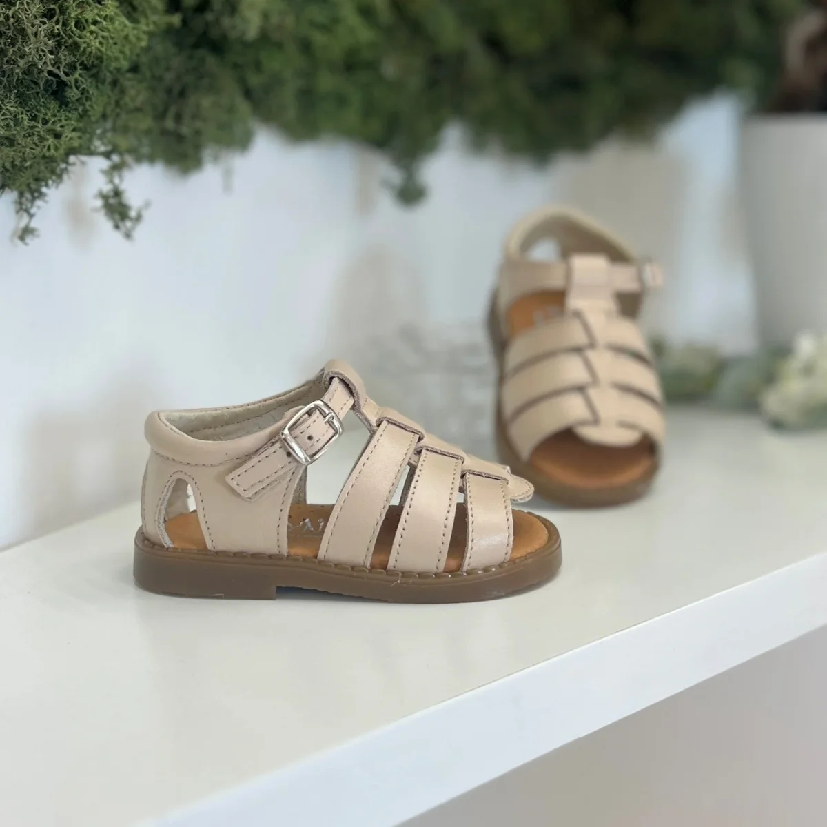 Sandalo ragnetto bimbo in pelle con fibbia, plantare anatomico e suola antiscivolo.