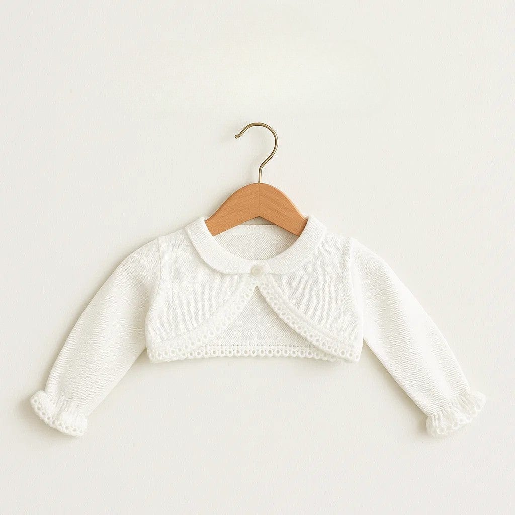 Scaldacuore neonata in misto lana con bordi smerlati.