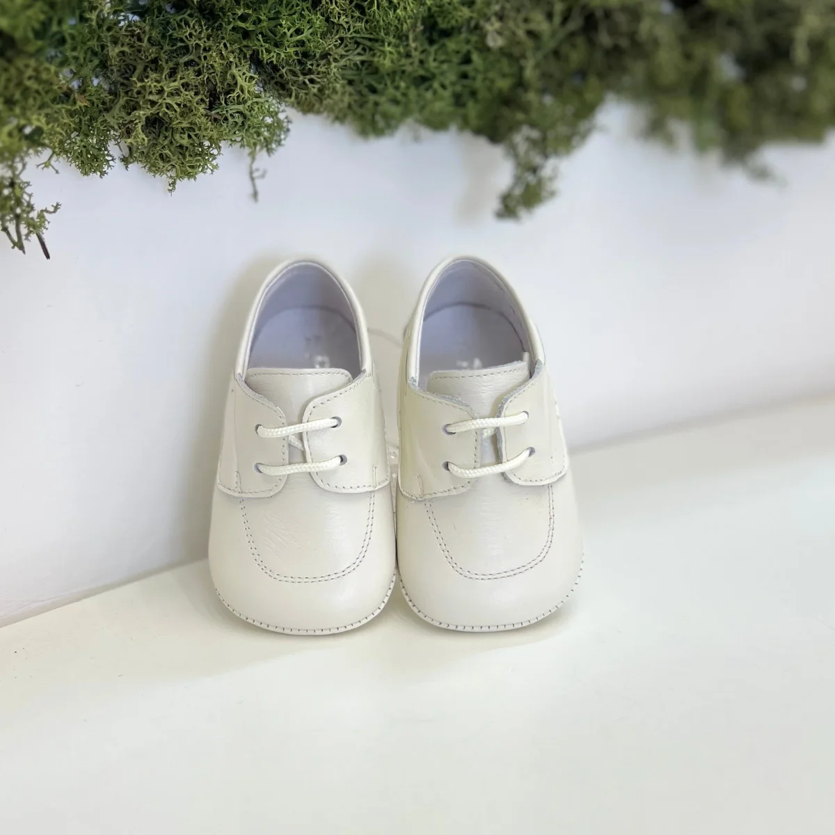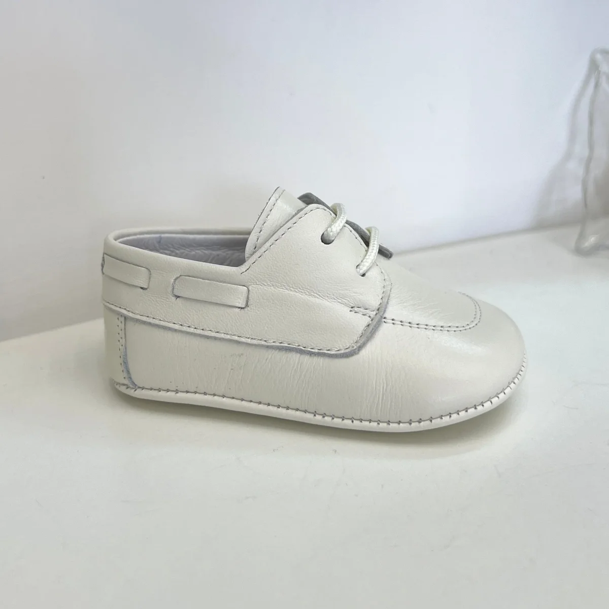 Scarpina elegante da culla in pelle, con lacci regolabili.