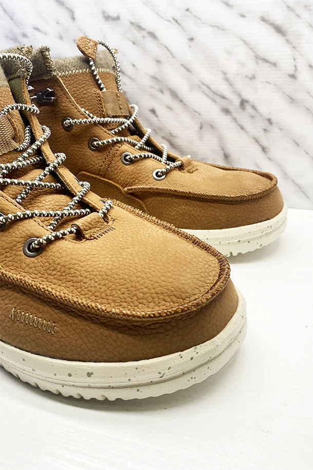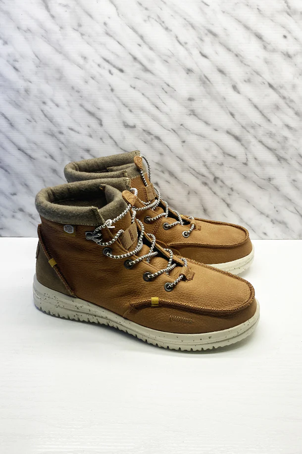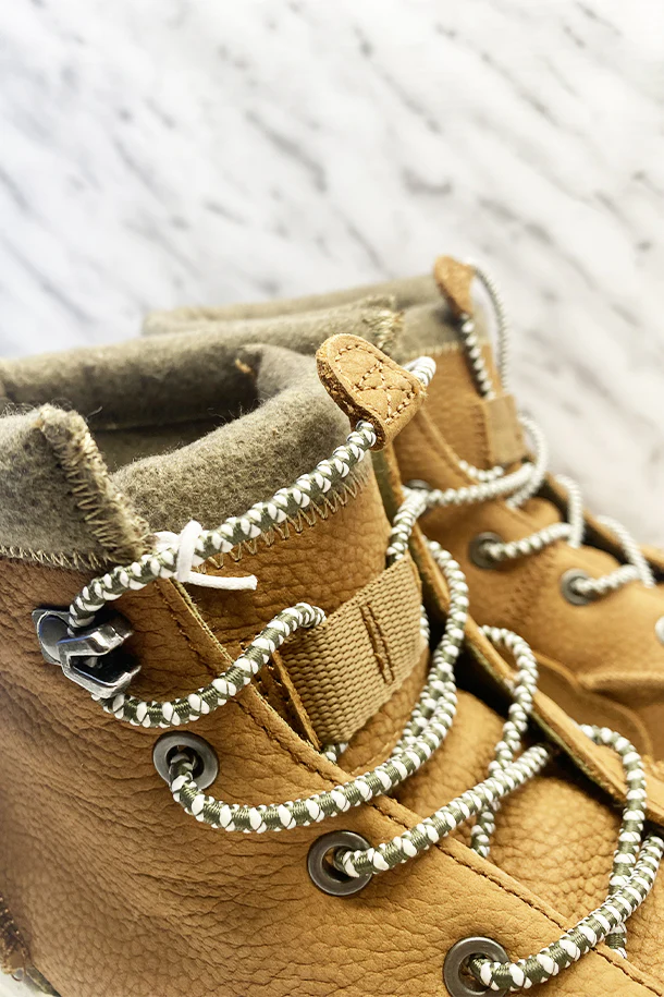 Scarponcini allacciati in pelle con impunture in tinta, lacci elastici, fodera caviglia in tessuto, suola in gomma ultraleggera