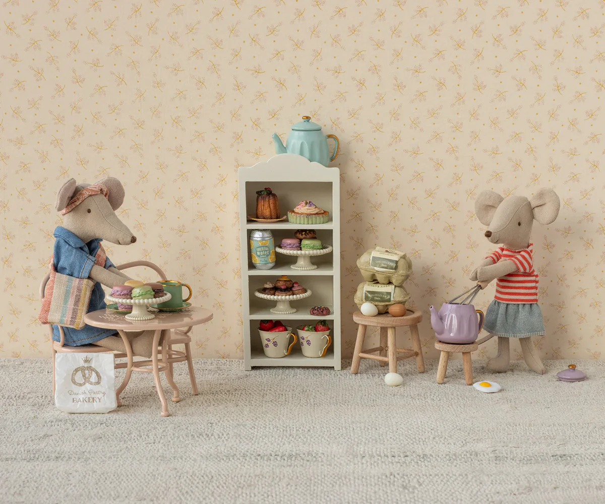 Dove prendono un buon tè i nostri amici topi se non intorno ad un tavolino rosa cipria? Il set è composto da una panca e un tavolo, perfetti per fare chiacchiere pomeridiane con gli amici.