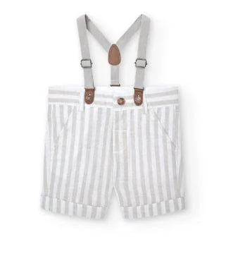 Queste bermudas in lino per bambini sono l’ideale per l’estate, sono caratterizzate da un design a righe e un tessuto piatto. Il colore è un elegante Pietra Listato. La chiusura è a bottone, facile da usare per i piccoli. I tiranti aggiungono un tocco di stile e rendono queste bermudas adatte per ogni occasione. Sono la scelta perfetta per i genitori che cercano un capo d’abbigliamento comodo e alla moda per i loro bambini.