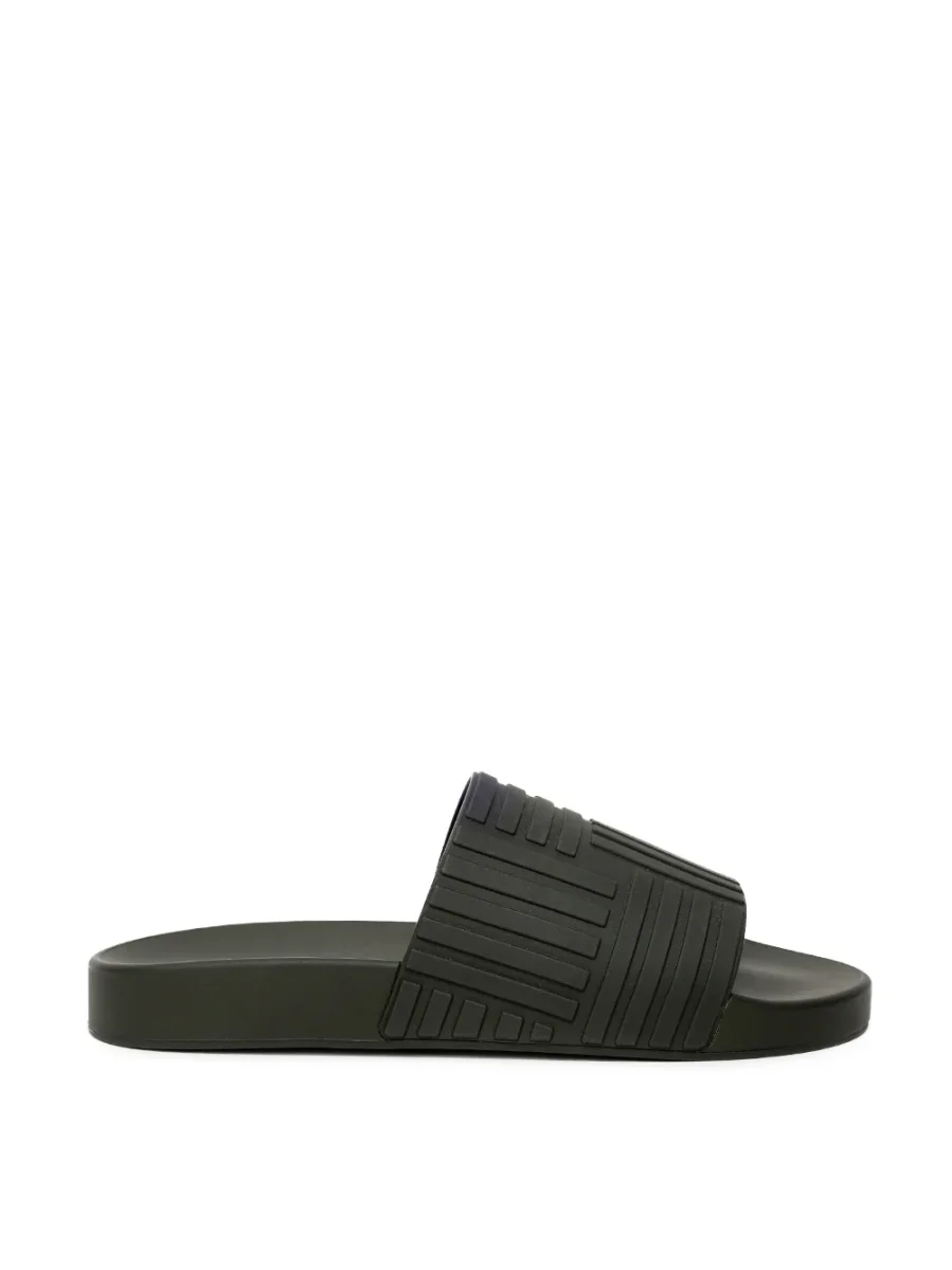 Sliders Carpet in Gomma Nera Bottega Veneta. Ciabatta in gomma nera satinata, banda con tema intreccio tono su tono, forma ergonomica e logo impresso. SKU Interno: 25FEB98.SKU Brand: 690105V1060