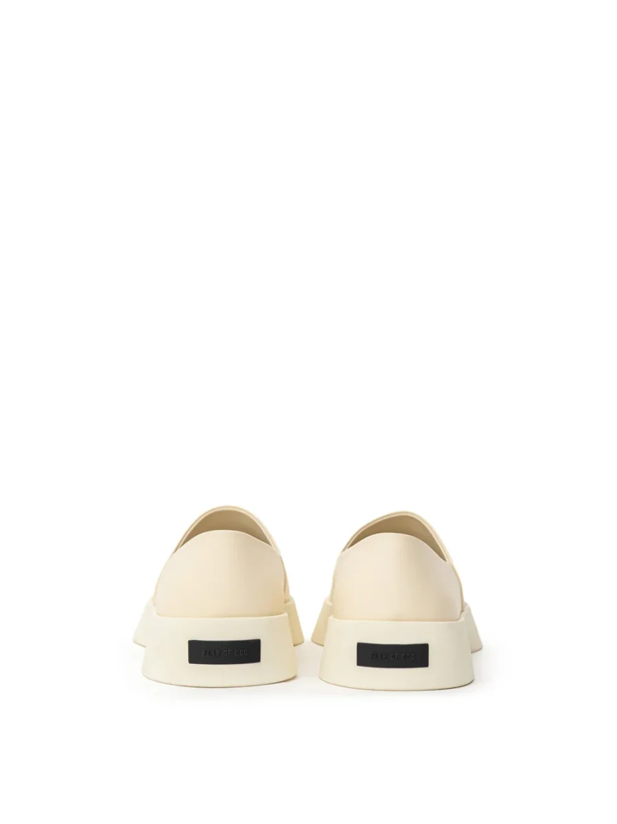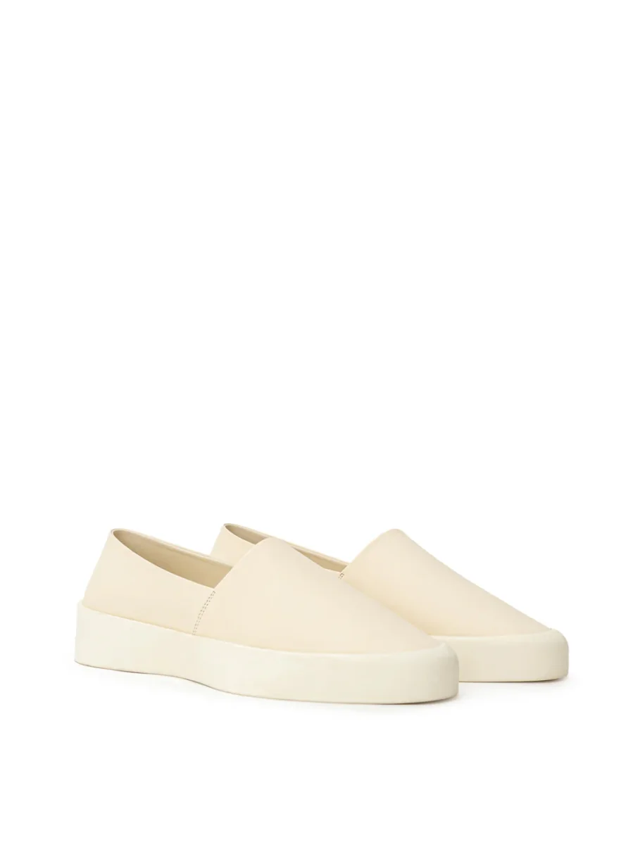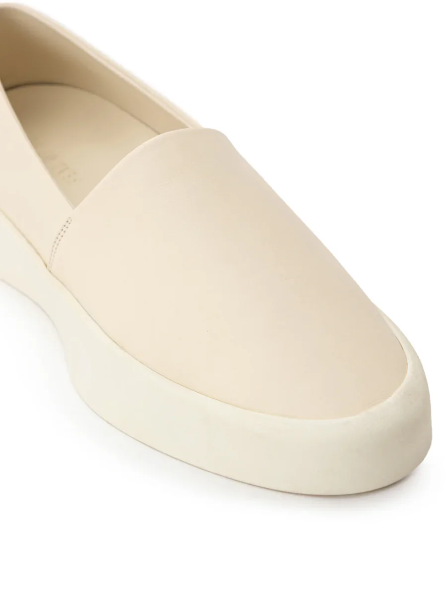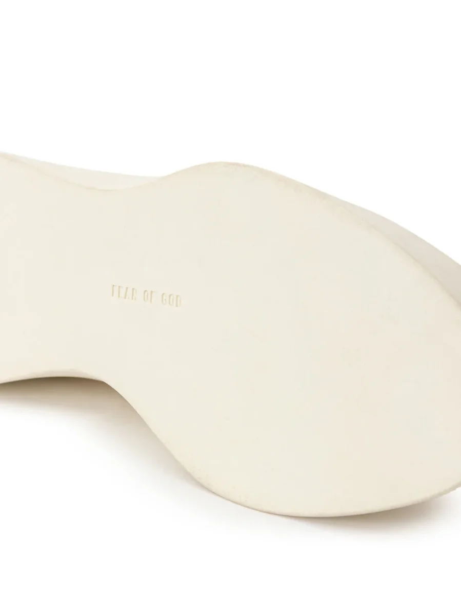 Slip-on in Nappa Color Panna Fear of God. Sandalo slip on colore panna con suola alta esterna in gomma bianca, punta tonda, tag logo applicato sul retro in nero.