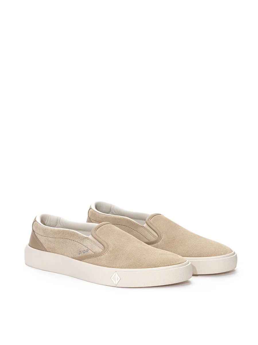 Slip on in Suede Beige Dior. Inserti in pelle tono su tono, suola esterna in gomma bianca, logo inciso sul lato in metal. Codice modello: B101. Composizione: 100% Pelle-Sku interno:24MG64