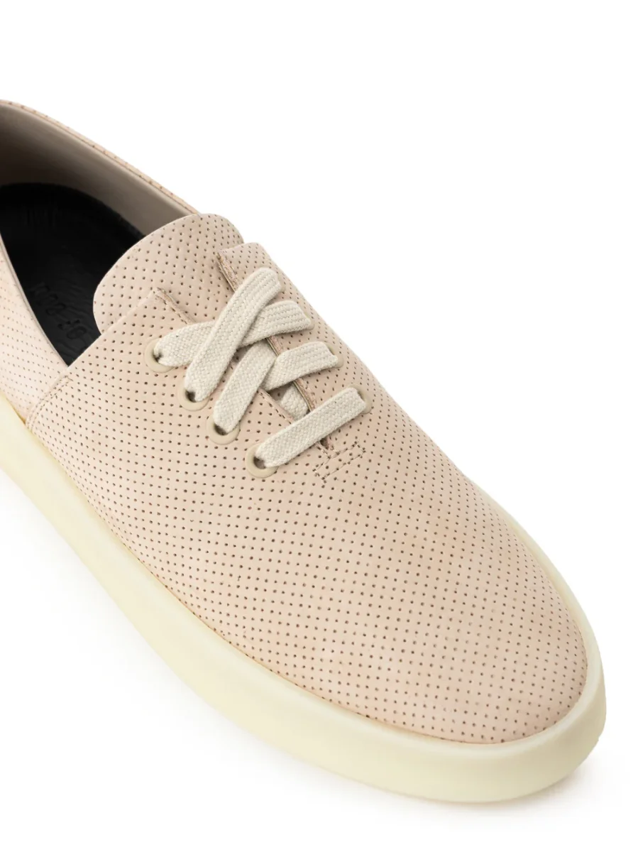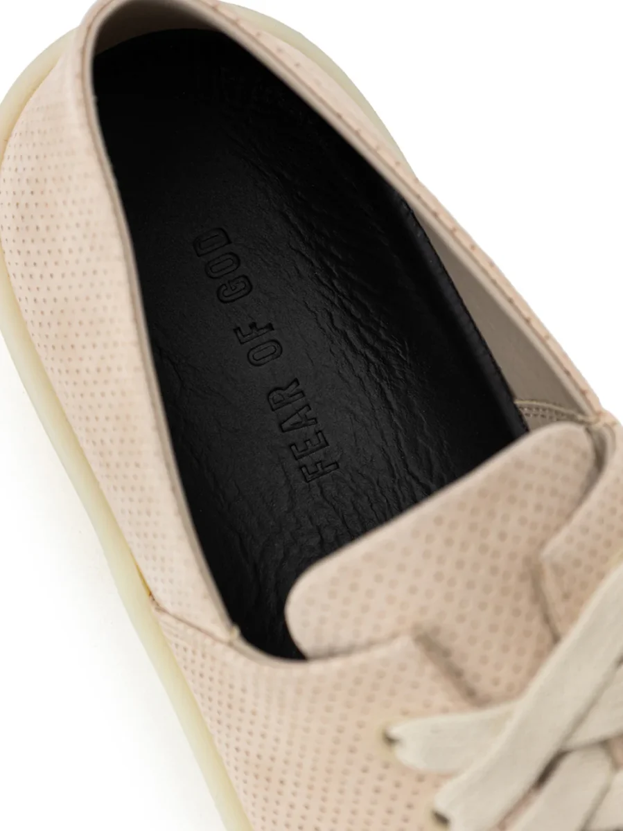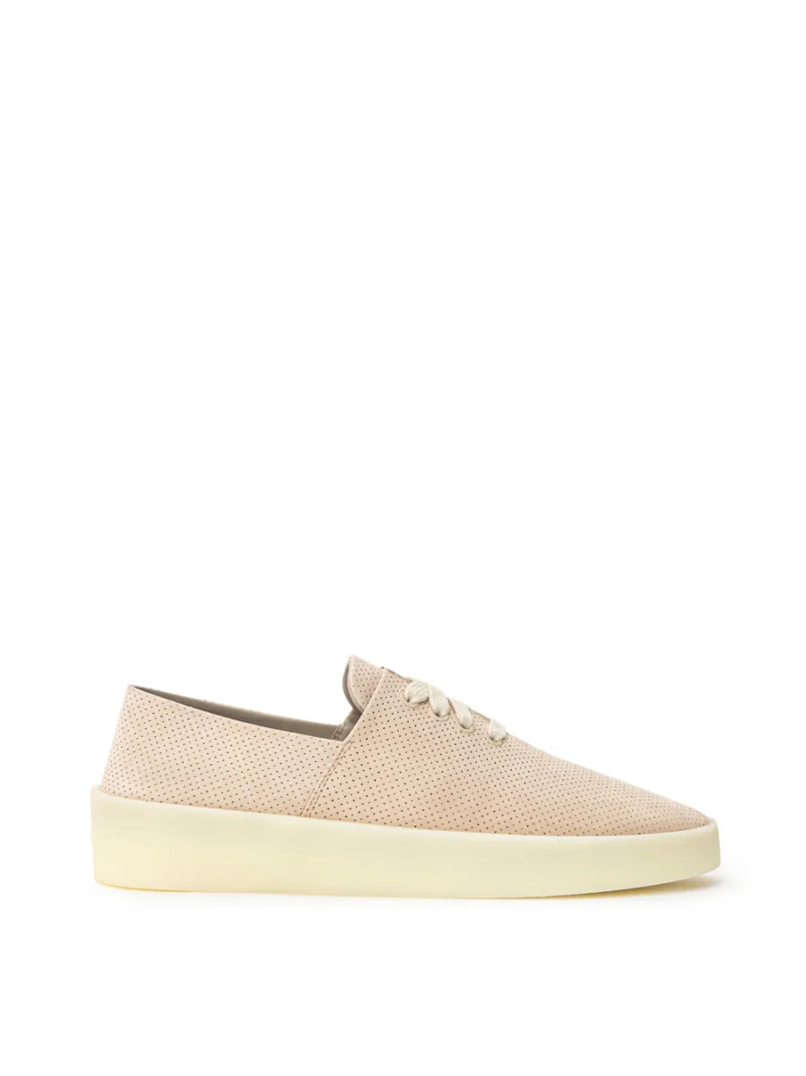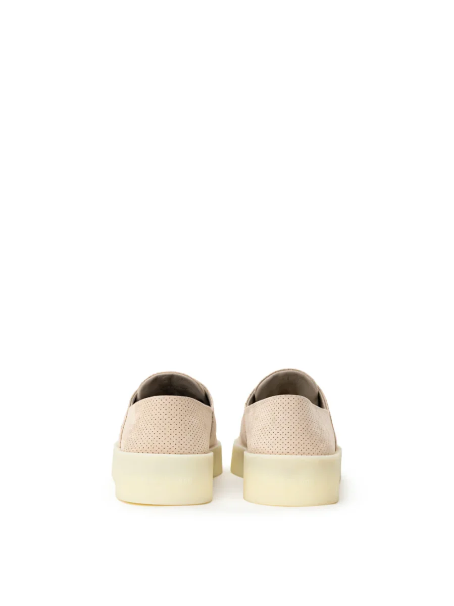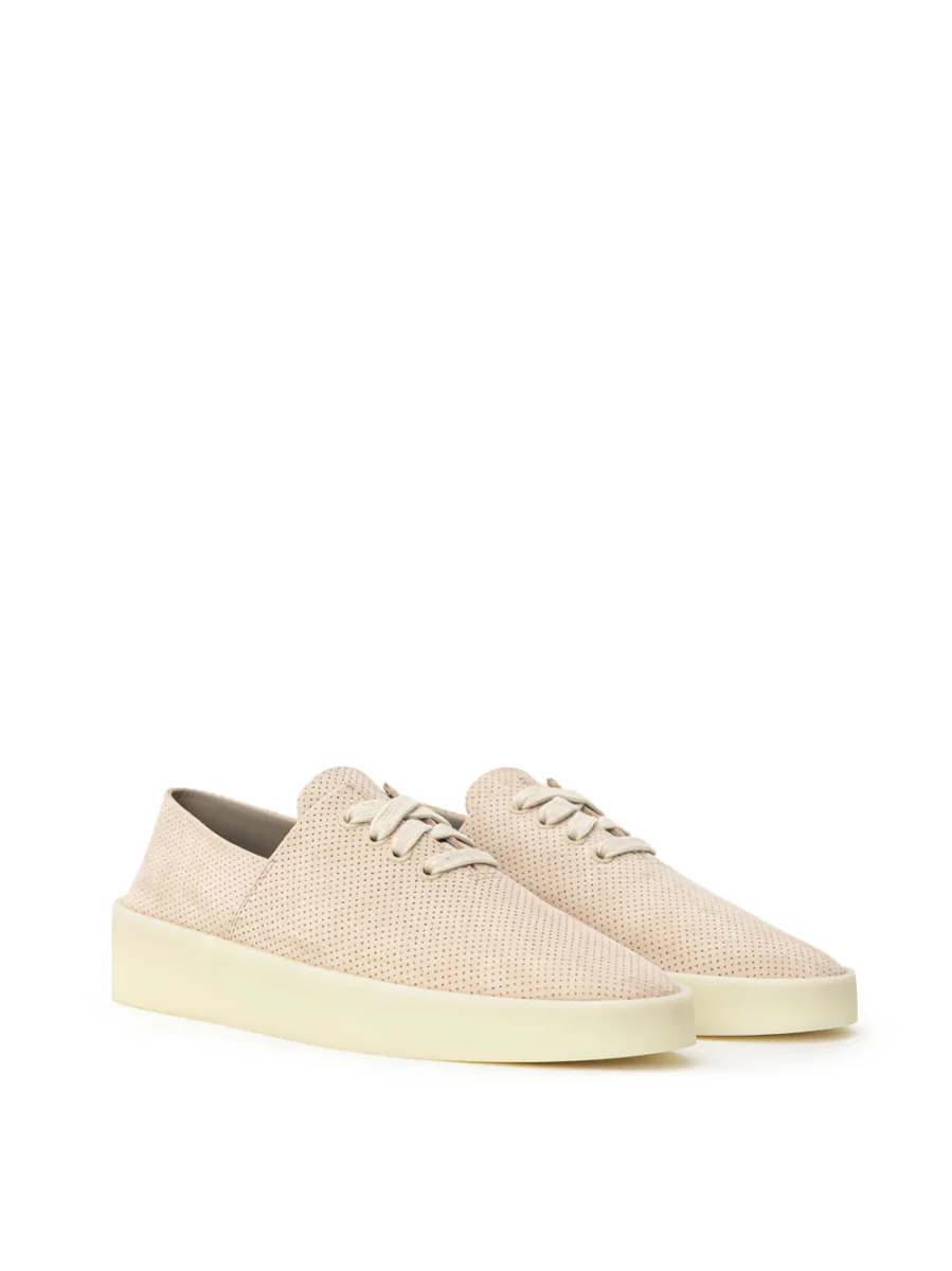 Sneaker Low-top in Suede Beige Fear of God. Tomaia in camoscio beige traforata allover, allacciatura frontale con lacci tono su tono, suola esterna over in gomma traslucida, punta allungata, logo tono su tono inciso sulla parte posteriore.