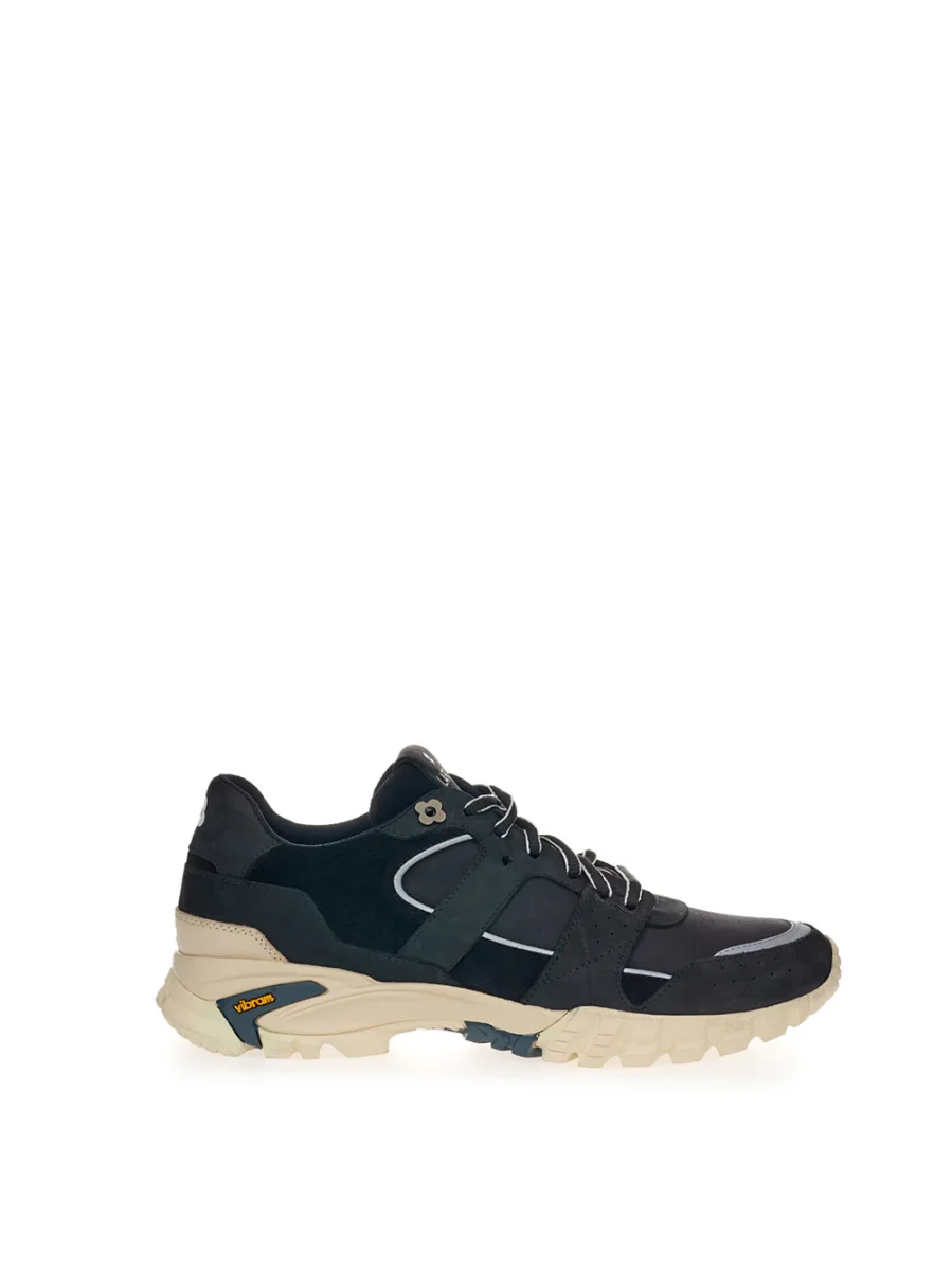 Sneaker Nera/Grigia Lardini by Yosuke Aizawa in nero/grigio con suola a contrasto bianca Vibram, allacciatura frontale con lacci neri e profili bianchi. Logo fiore metallo applicato-Sku interno:23FE06-10