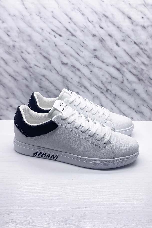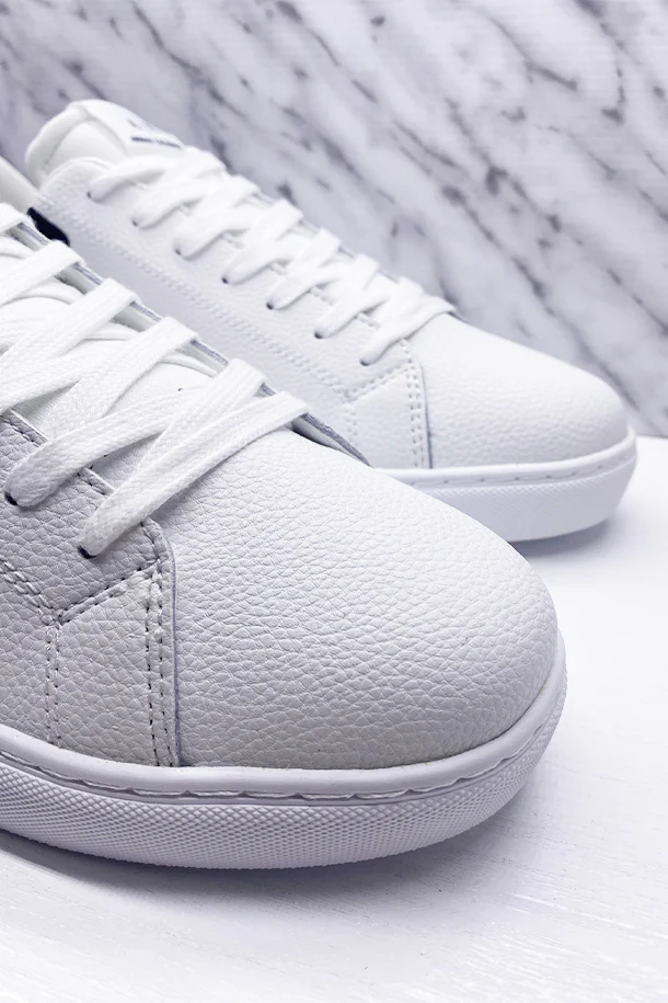 Sneakers allacciate in eco pelle martellata solid color con inserto tallone a contrasto, logo posteriore e su badge linguetta, suola flat in gomma con maxi scritta verniciata