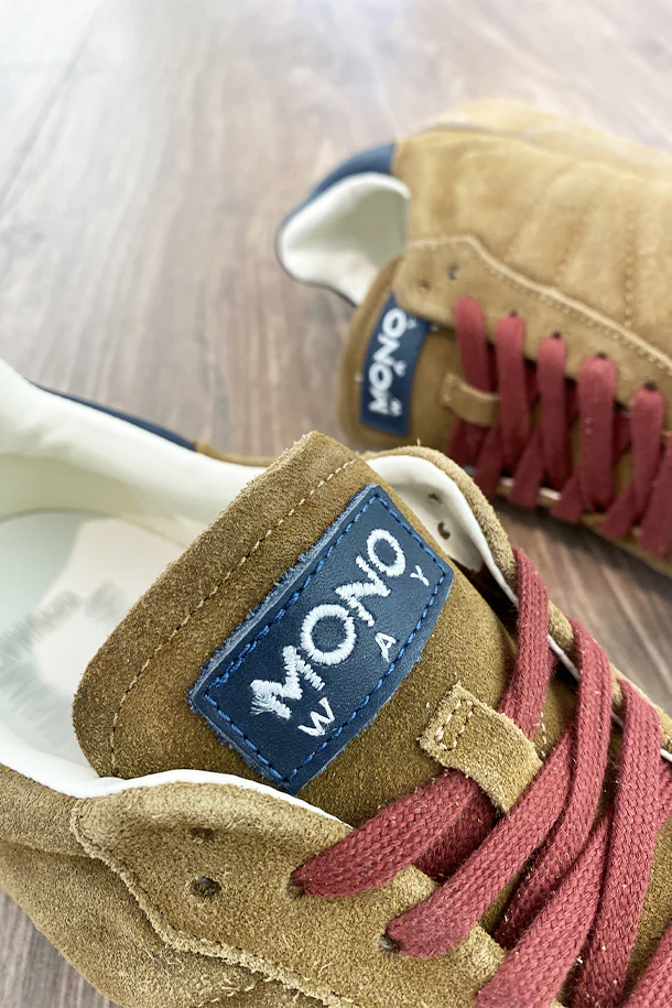 Sneakers allacciate in pelle scamosciata abrasivata solid color, badge con logo, inserto tallone a contrasto, doppi lacci in cotone, interno in pelle, suola in gomma vintage con impunture