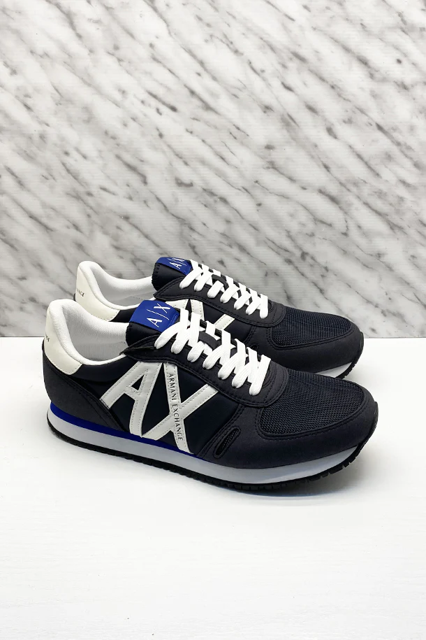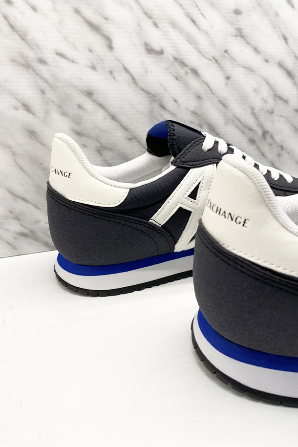 Sneakers allacciate in tessuto con inserti in eco suede, maxi logo laterale e inserto tallone a contrasto, suola in gomma multicolore
