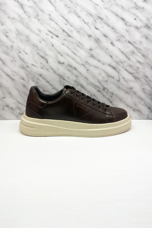 Sneakers allacciate in eco pelle solid color effetto vintage, logo impresso laterale, suola flat in gomma