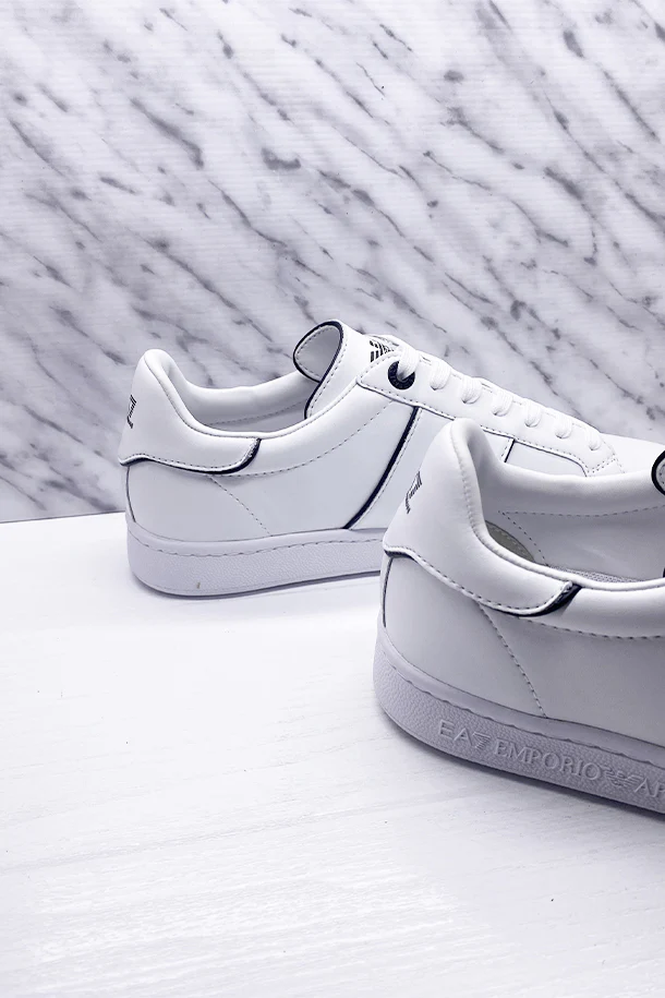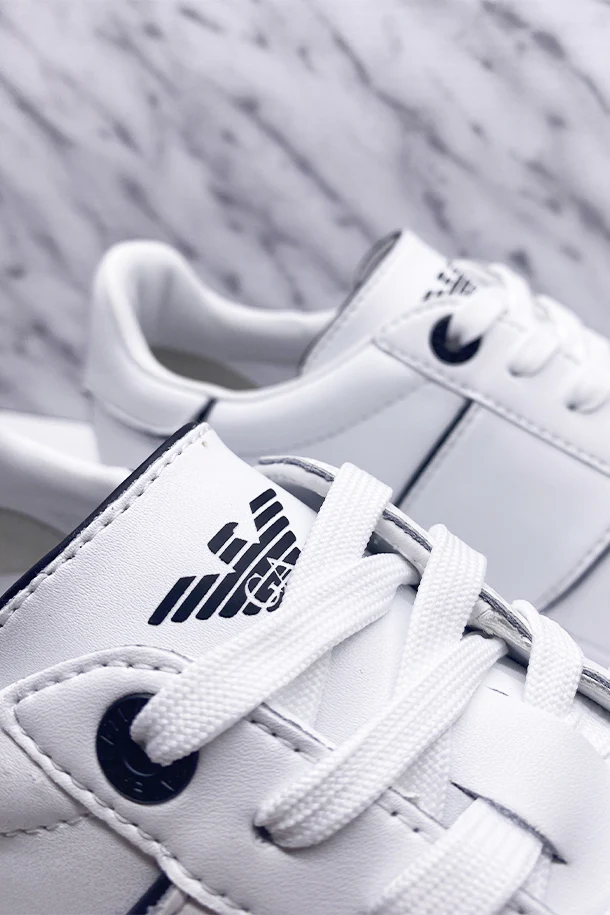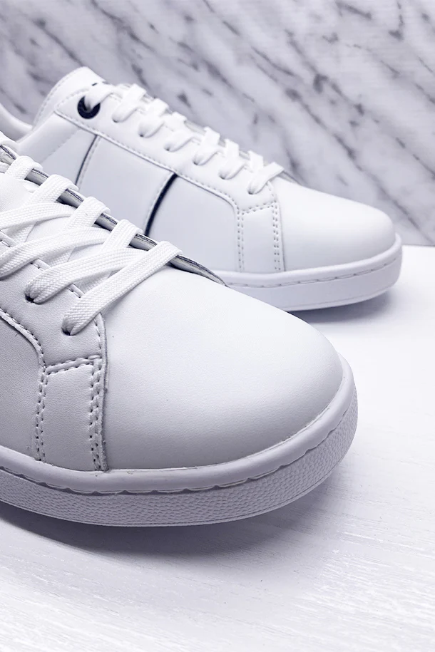 Sneakers allacciate in eco pelle solid color con bordature a contrasto, maxi logo stampato laterale, suola flat logata in gomma