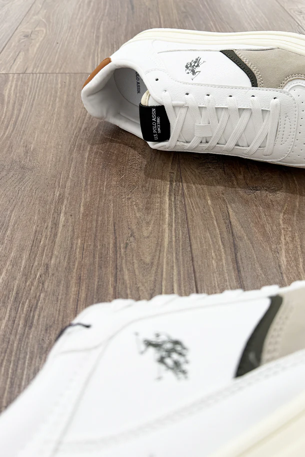 Sneakers allacciate in eco pelle solid color con inserti in eco suede, logo laterale, lacci in cotone, suola in gomma