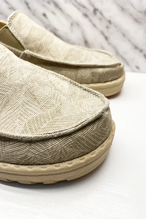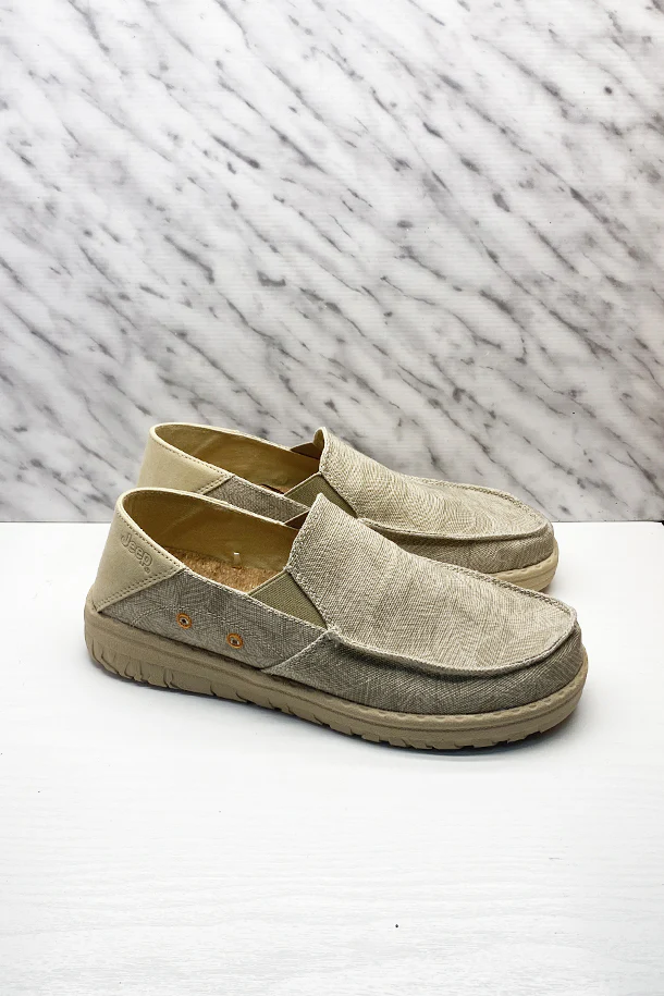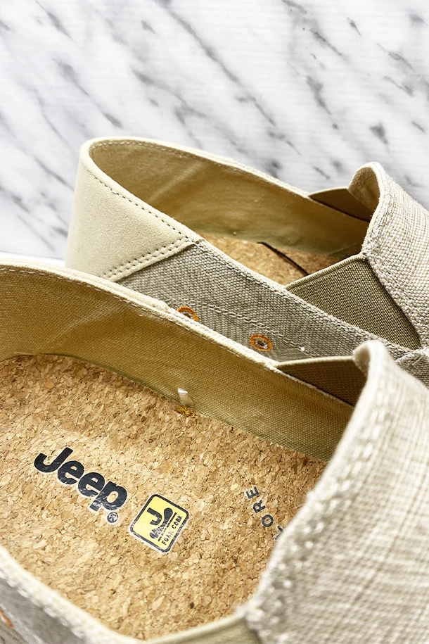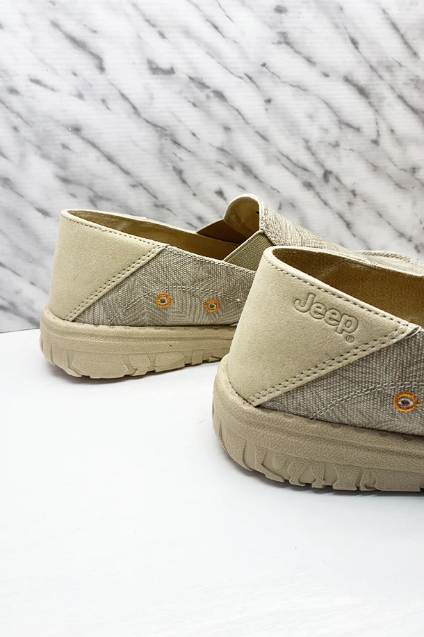 Sneakers slip on in tessuto micro fantasia con inserti elastici, dettaglio tallone scamosciato con logo impresso, suola interna in sughero, fondo in gomma
