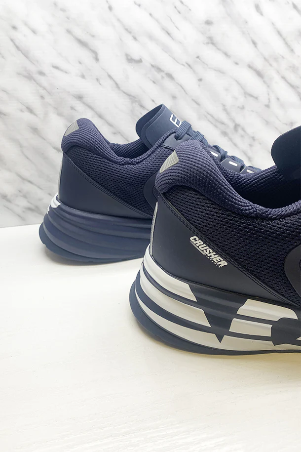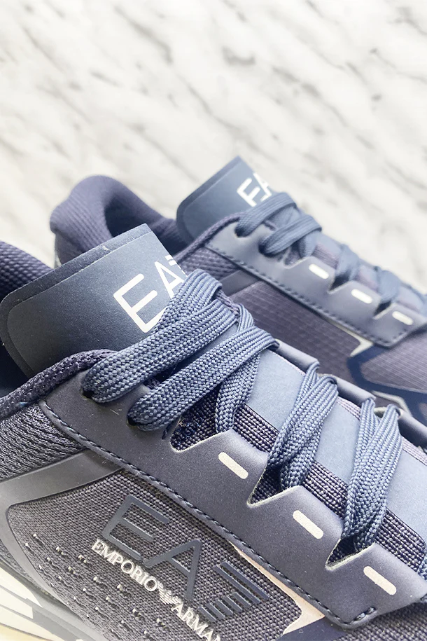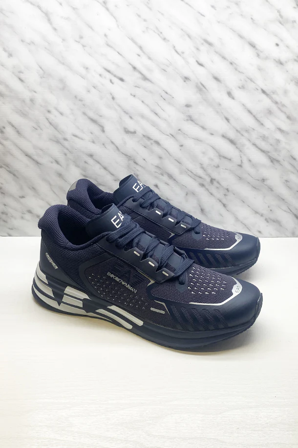 Sneakers allacciate in tessuto elasticizzato con dettagli in gomma a contrasto, maxi logo stampato laterale, suola in gomma sagomata