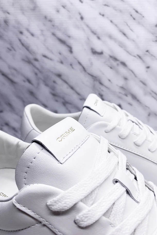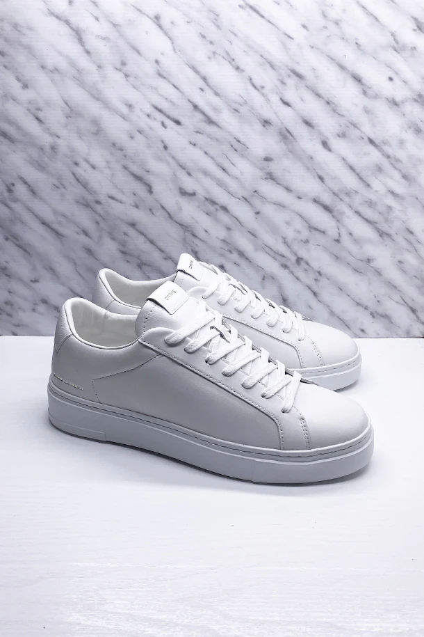Sneakers allacciate in pelle total color, loghi impressi, interno in tessuto, linguetta in pelle logata, suola in gomma