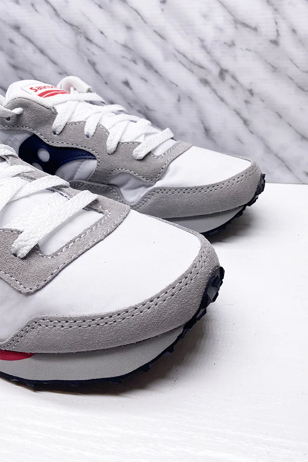 Sneakers allacciate in nylon con inserti scamosciati a contrasto, maxi logo laterale, tallone logato, doppi lacci, suola in gomma multicolore