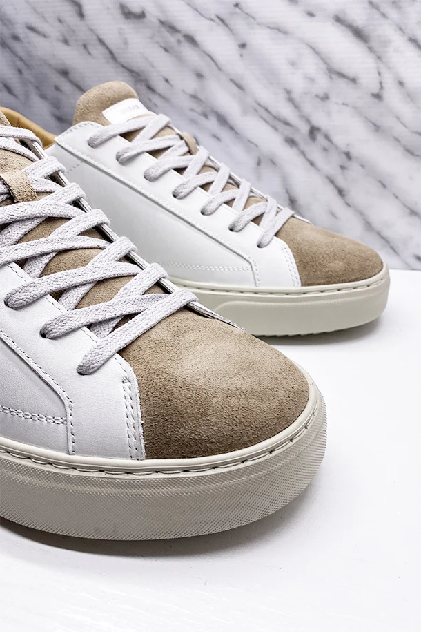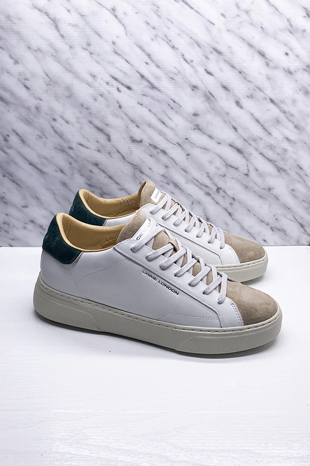 Sneakers allacciate in pelle total color con inserti in camoscio a contrasto, loghi impressi, linguetta in pelle logata, suola in gomma impunturata