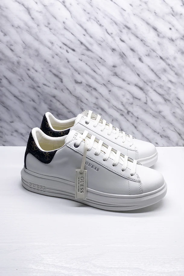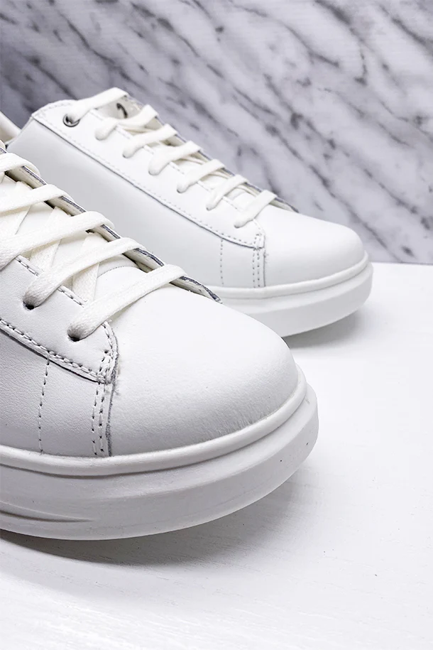 Sneakers allacciate in pelle con inserto tallone a contrasto, logo impresso laterale, suola logata in gomma